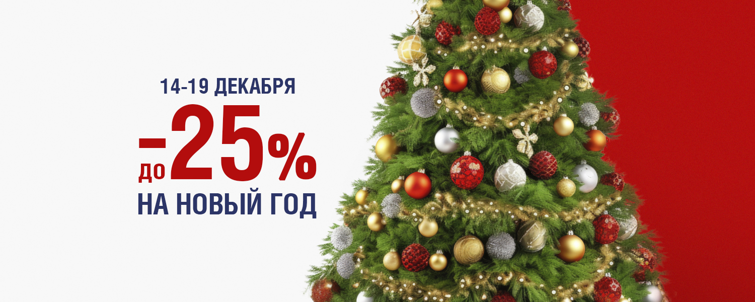 Подарите себе праздник вместе с ДомоСтрой! С 14 по 19 декабря — скидка до 25% на всё для Нового года. Успейте выгодно купить ёлку, гирлянды и украшения, чтобы сделать свой дом по-настоящему праздничным и создать новогоднюю атмосферу!