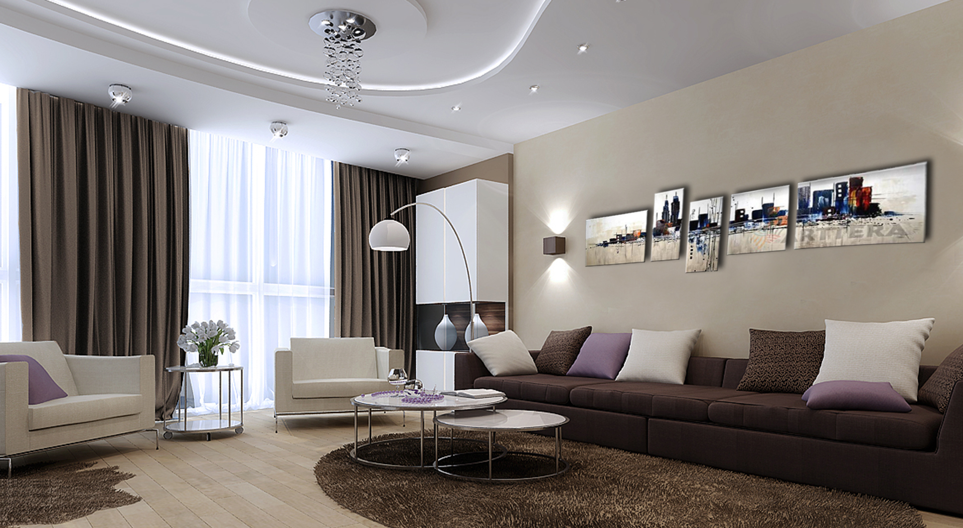 В гостиной принято собираться семьей или встречать гостей, отдыхать. Поэтому гостиную разумно разделить на несколько зон. Например, рабочая, для отдыха или зона для чаепития. В ней должно присутствовать освещение от яркого до приглушенного спектра.