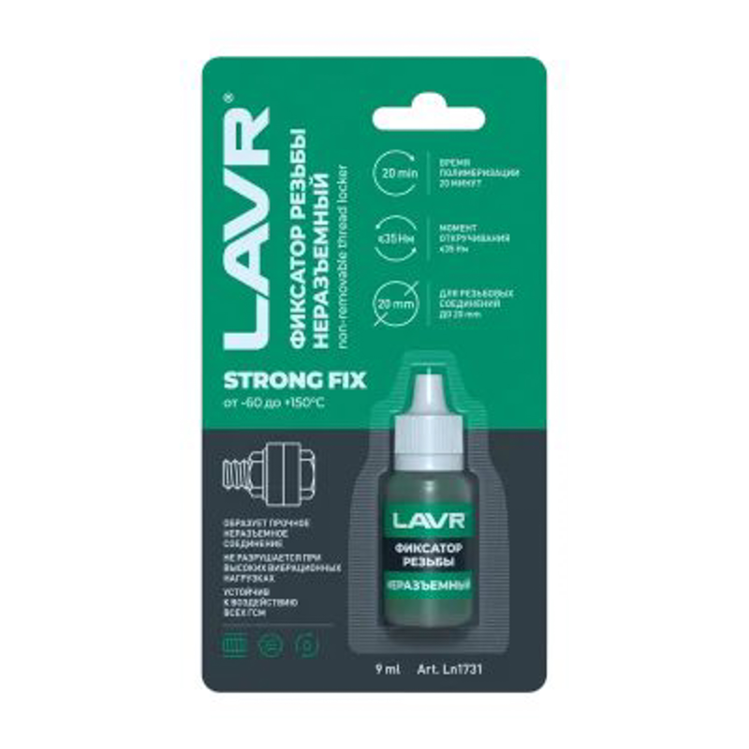 Неразъемный фиксатор резьбы LAVR, 9 мл / Ln1731 *24