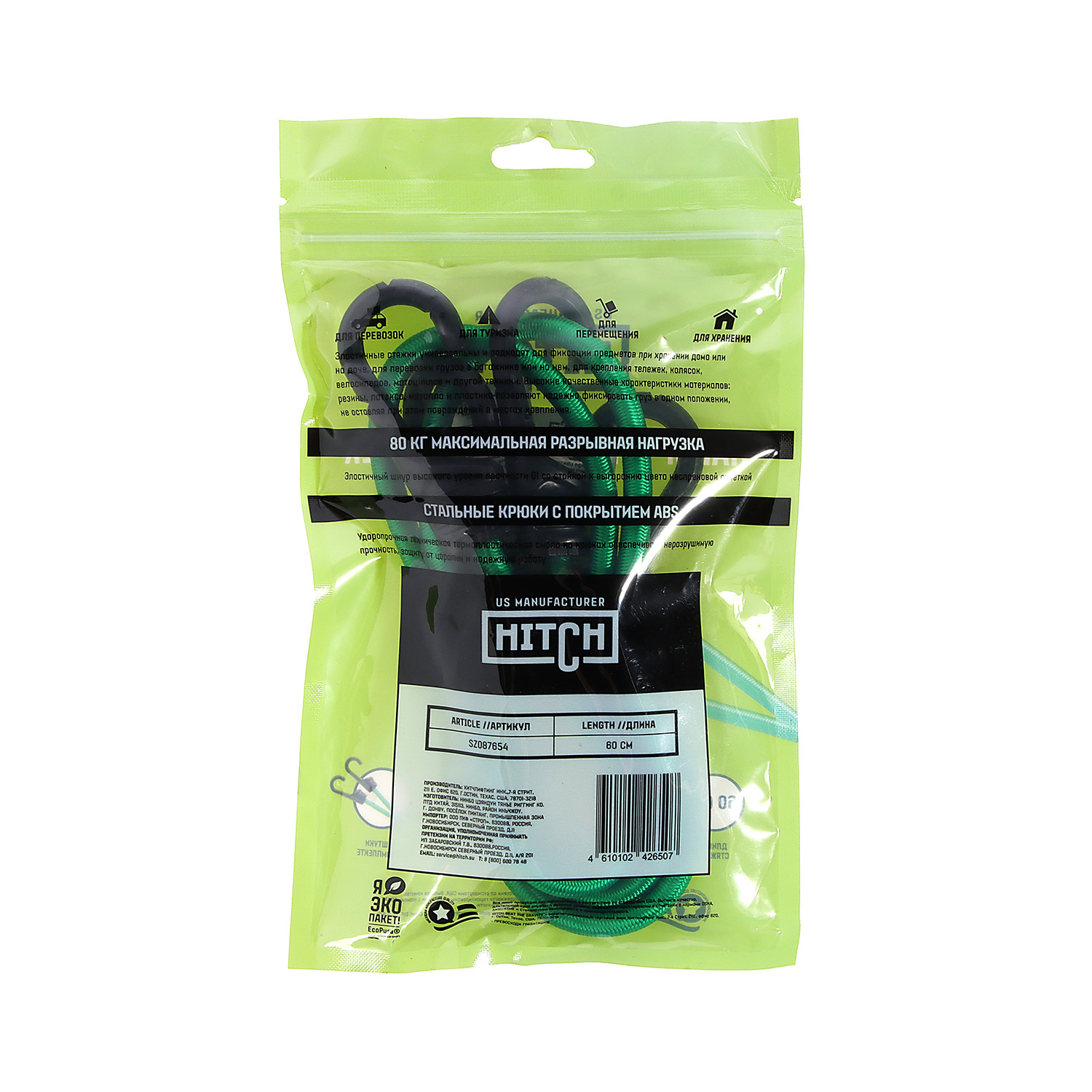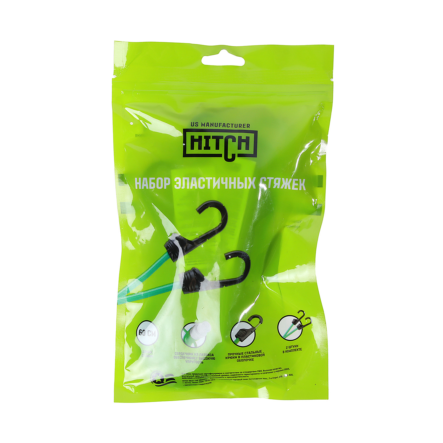 Стяжка эластичная 60см, d8мм, 2шт, резина,латекс, крюк.пласт, сердц.сталь арт.SZ087654 Hitch Regular *1/50
