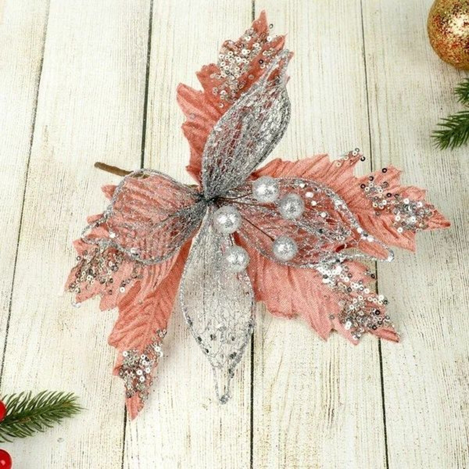 Декор "Зимний цветок" посыпка, 24х12 см, кремовый 4295963