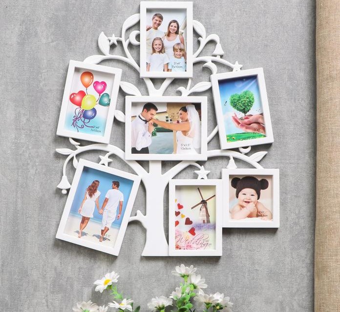Фоторамка на 7 фото 7х7 см, 7х10 см, 13х9 см "Дерево желаний" белая 36х31 см 1146189