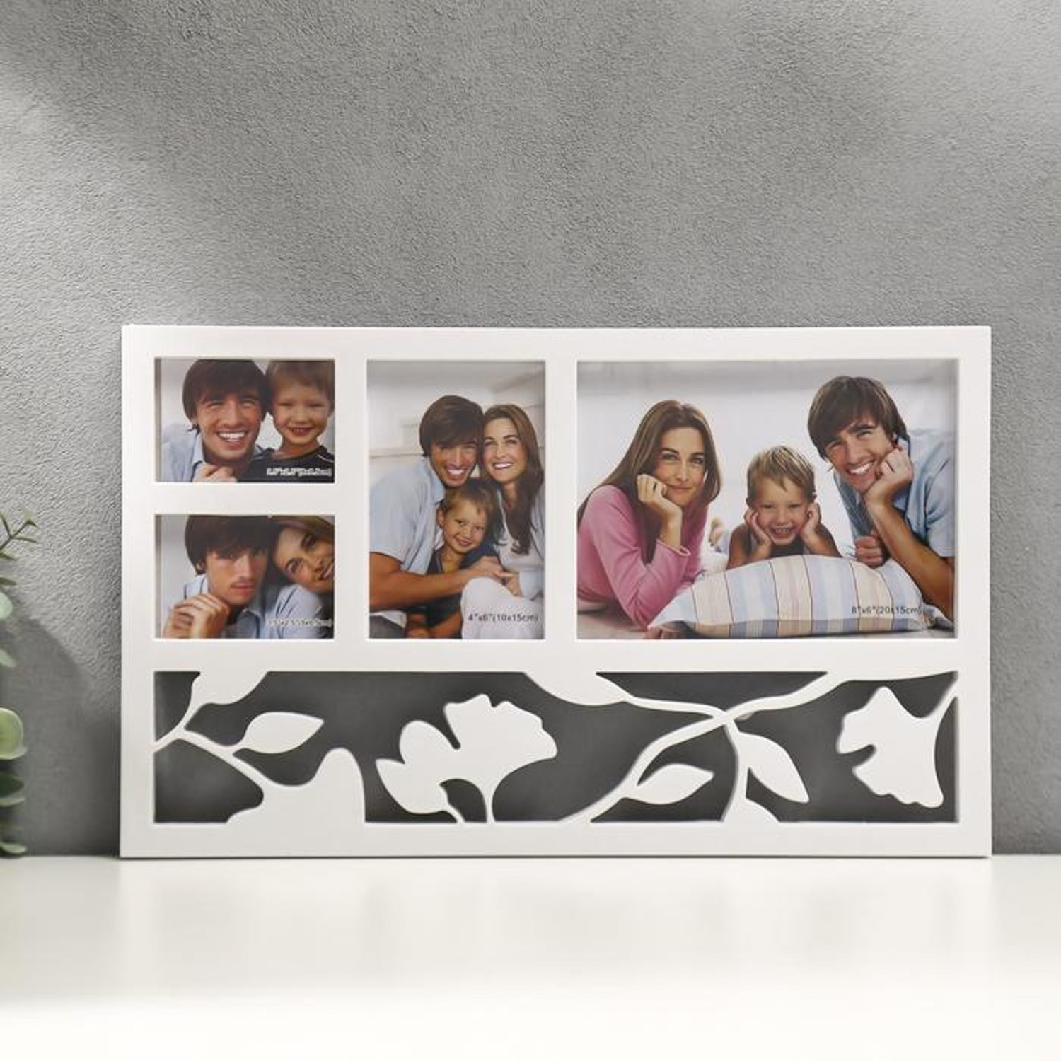 Фоторамка пластик на 4 фото 6,5x9, 10x15, 20x15 см "Листья" 43x26 см 134748