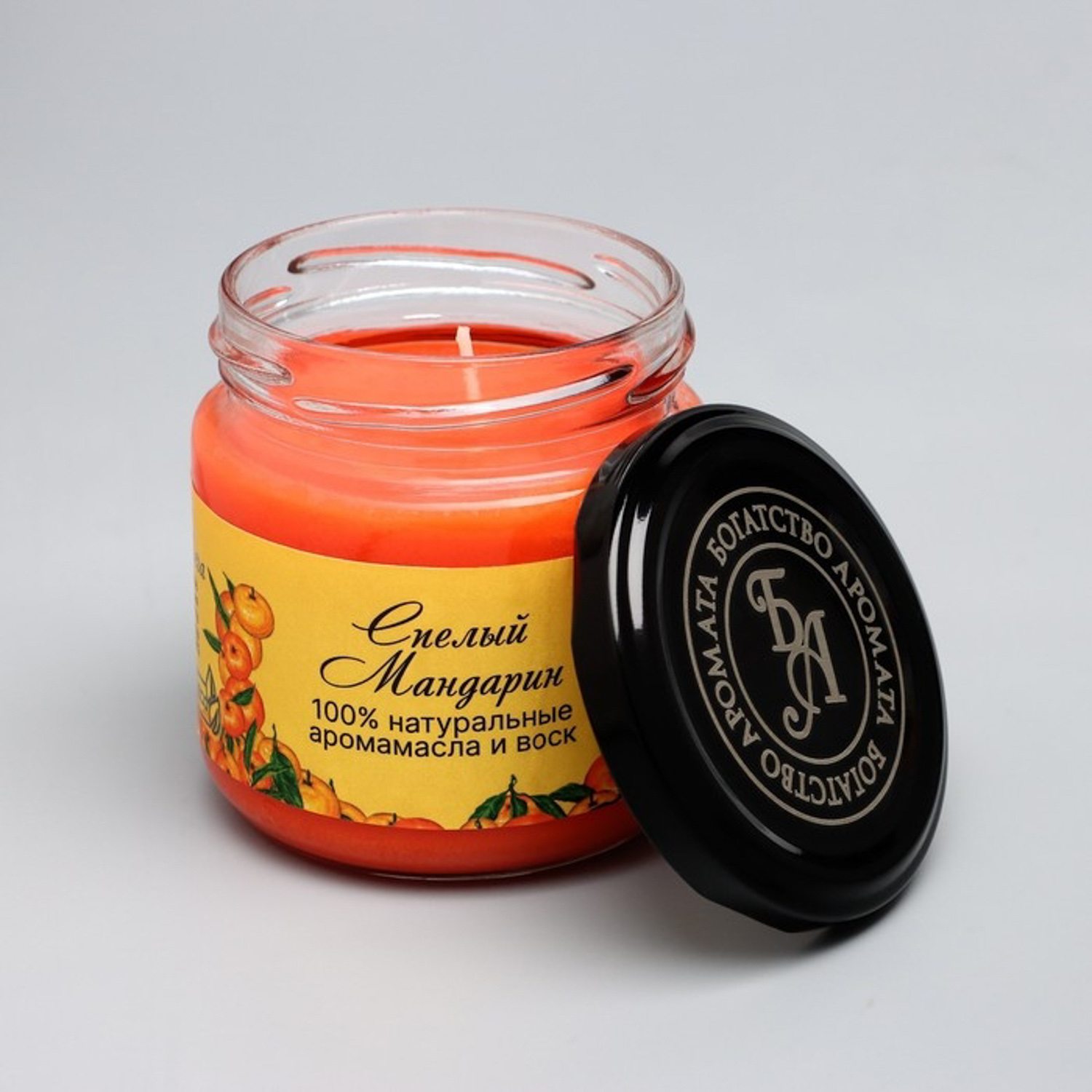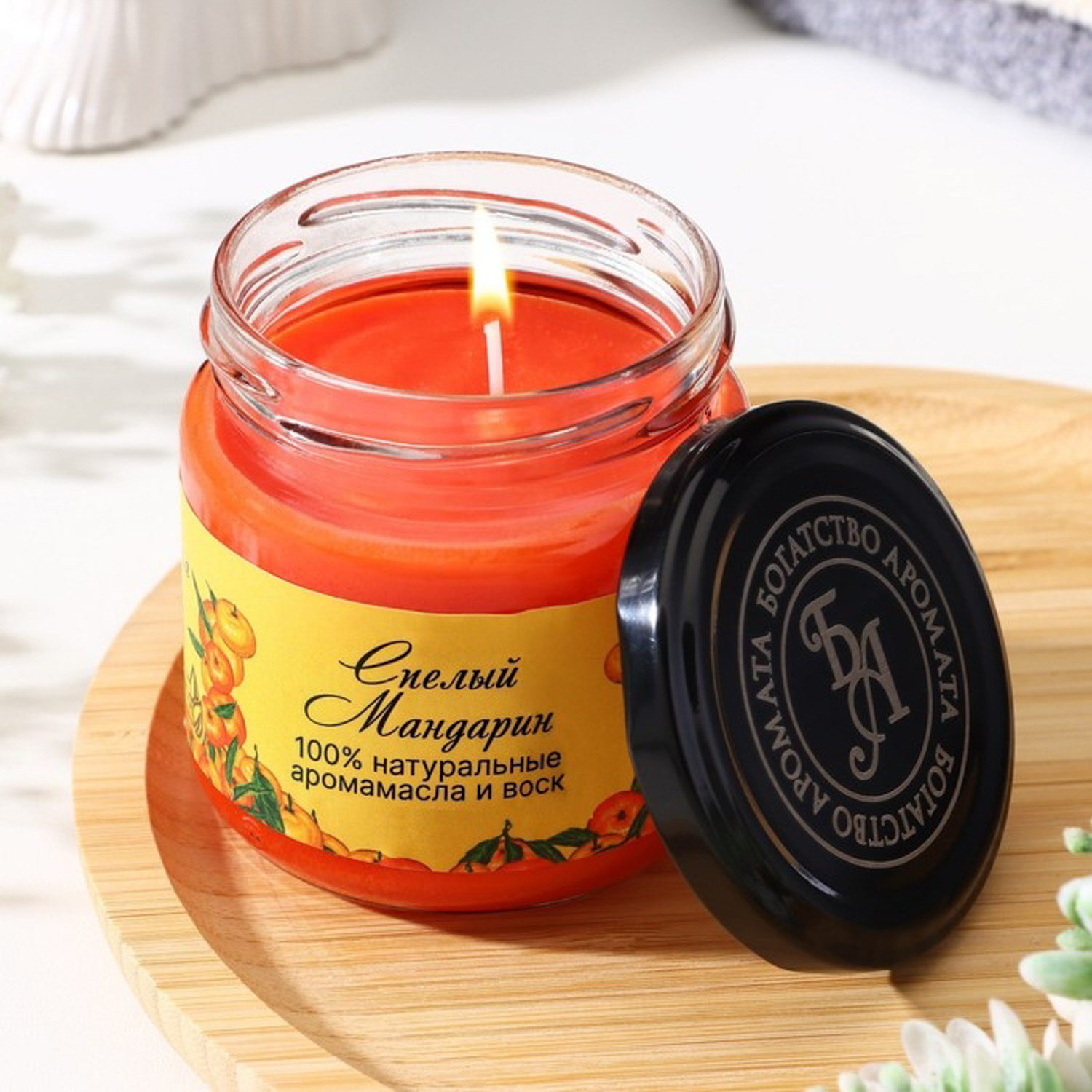 Натуральная эко свеча из пальмового воска, "Спелый мандарин", оранжевая, 7х7,5 см, 14 ч 6766593