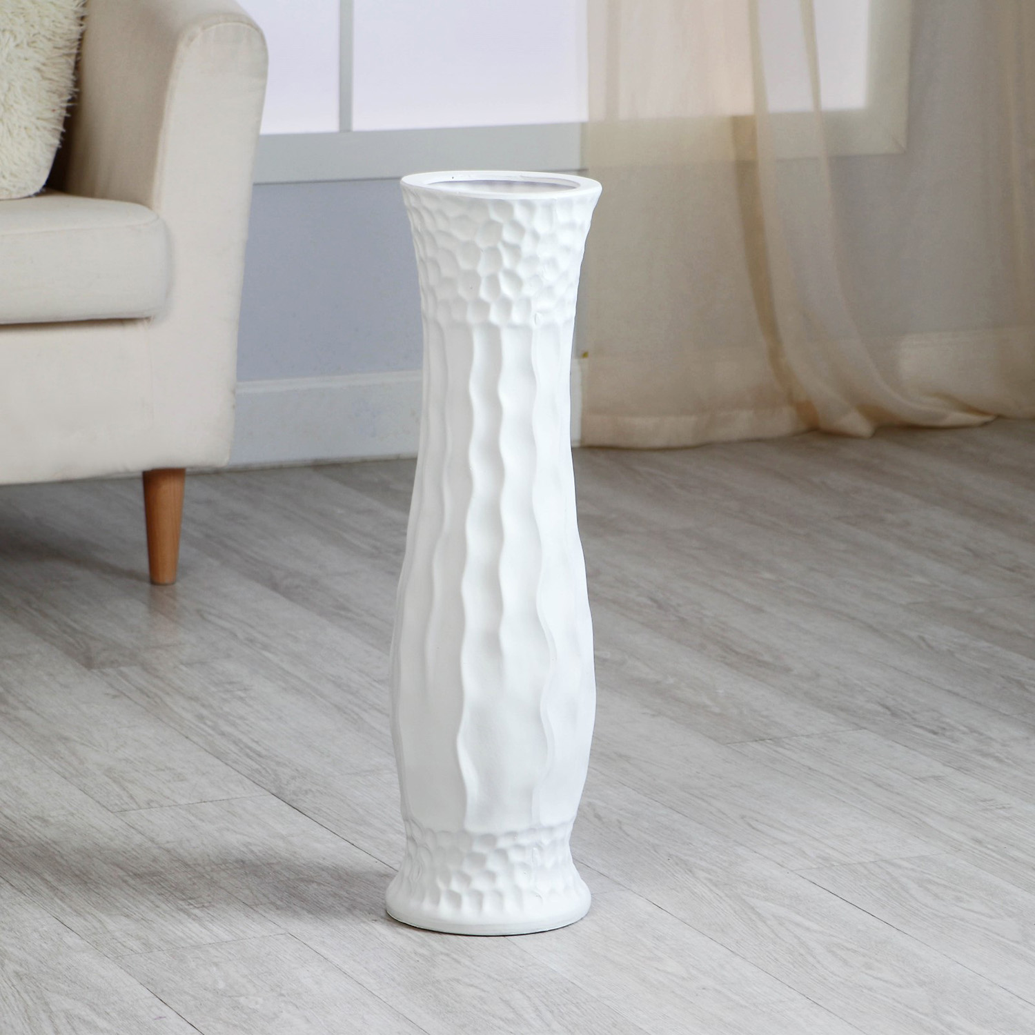 Ваза керамика напольная "Литон" талия, d вн.12,5 см 16х60 см, белый 9750462
