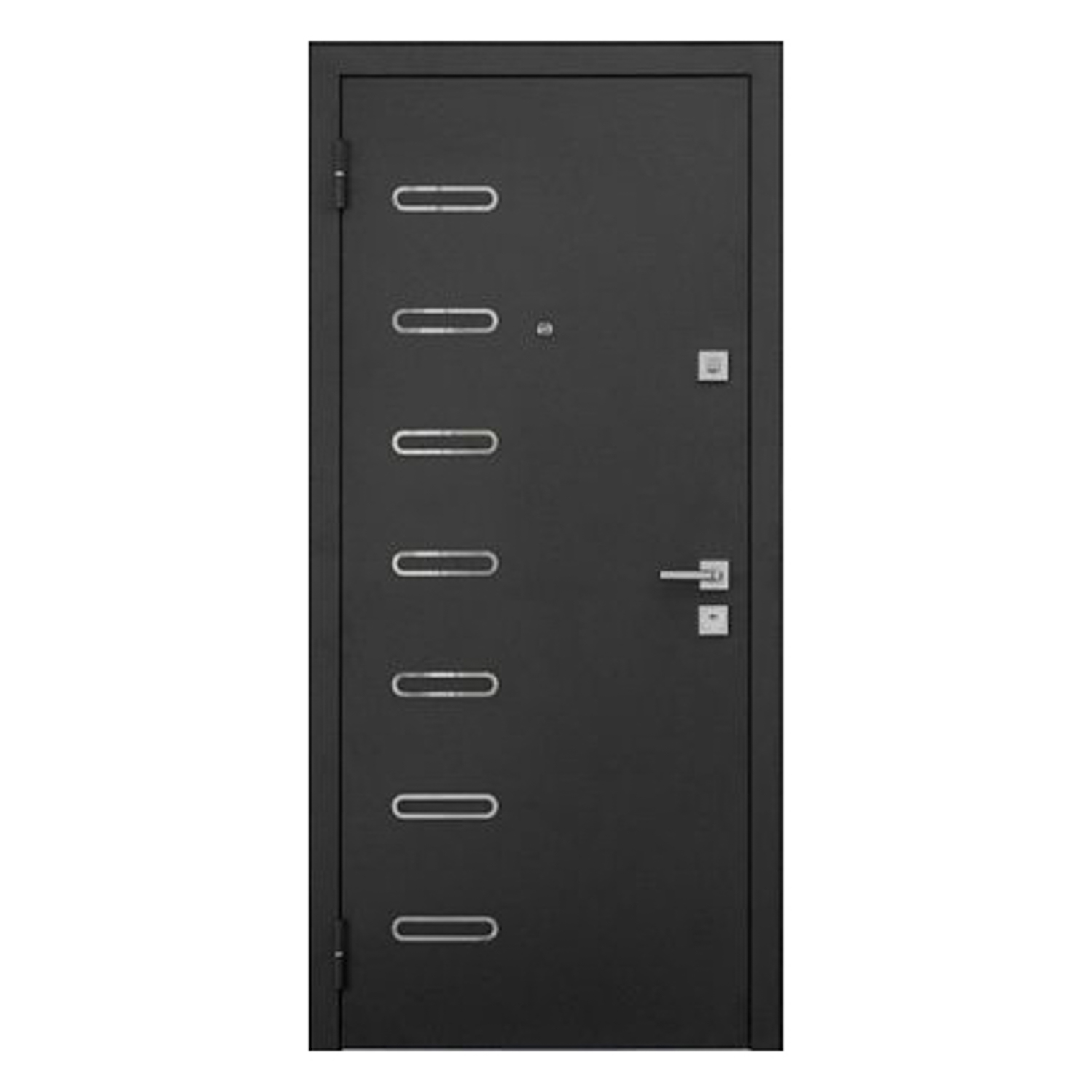 Дверное полотно, дверной короб, петли- 3 шт., противосъемные ригели - 3 шт., наличник, уплотнители -