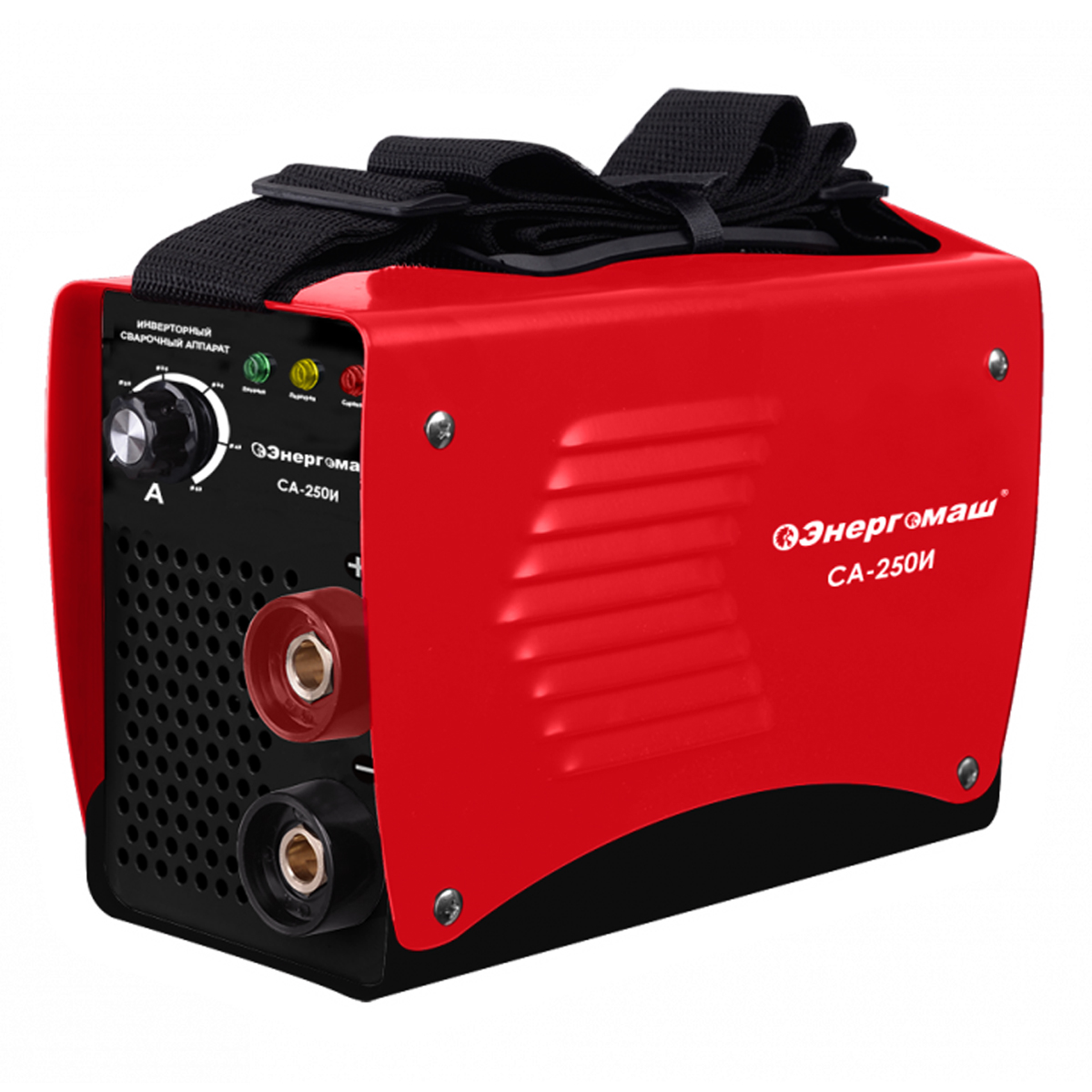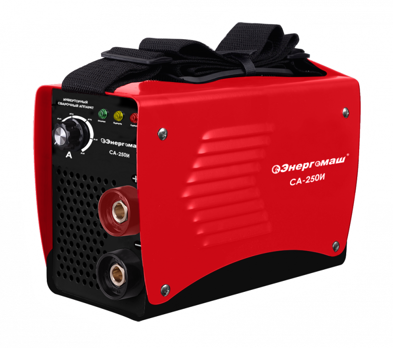 Сварочный аппарат, кабель с электрододержателем, кабель с клеммой заземления, ремень для переноски,