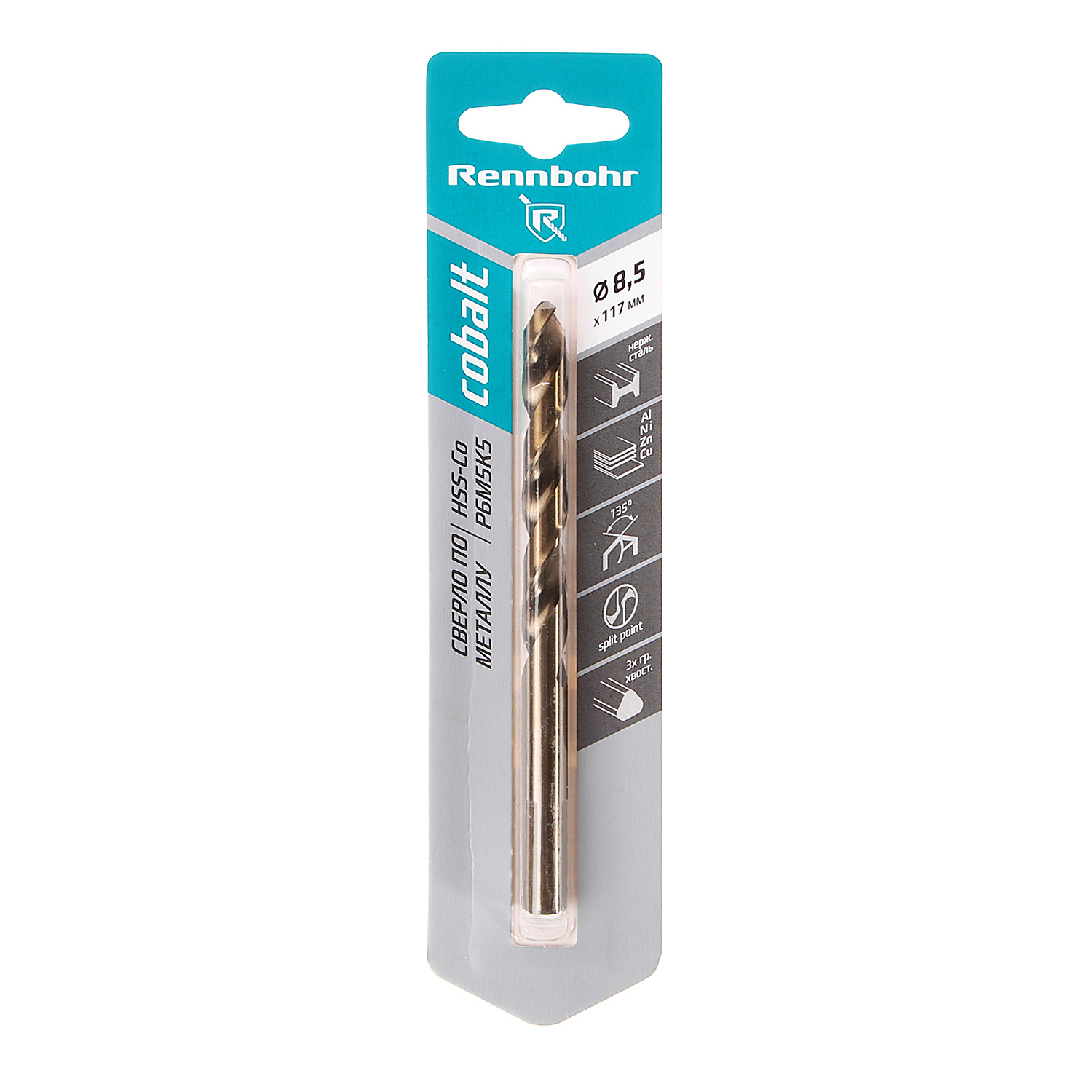 Сверло по металлу 8,50*117/75мм HSS-Co P6M5К5 (1шт) блистер арт.668085 COBALT RENNBOHR *10/40/320