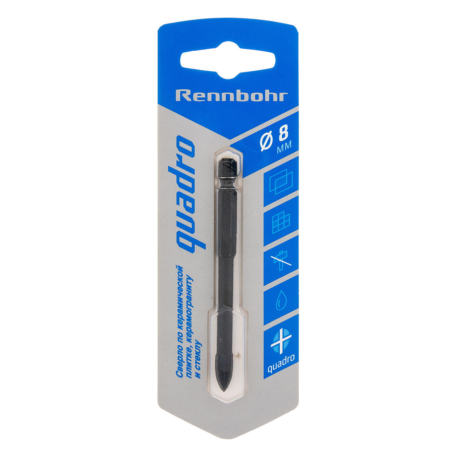 Сверло по стеклу/керамике 8,0мм (1шт) RB Quadro 4 грани (арт.676108) *10/40