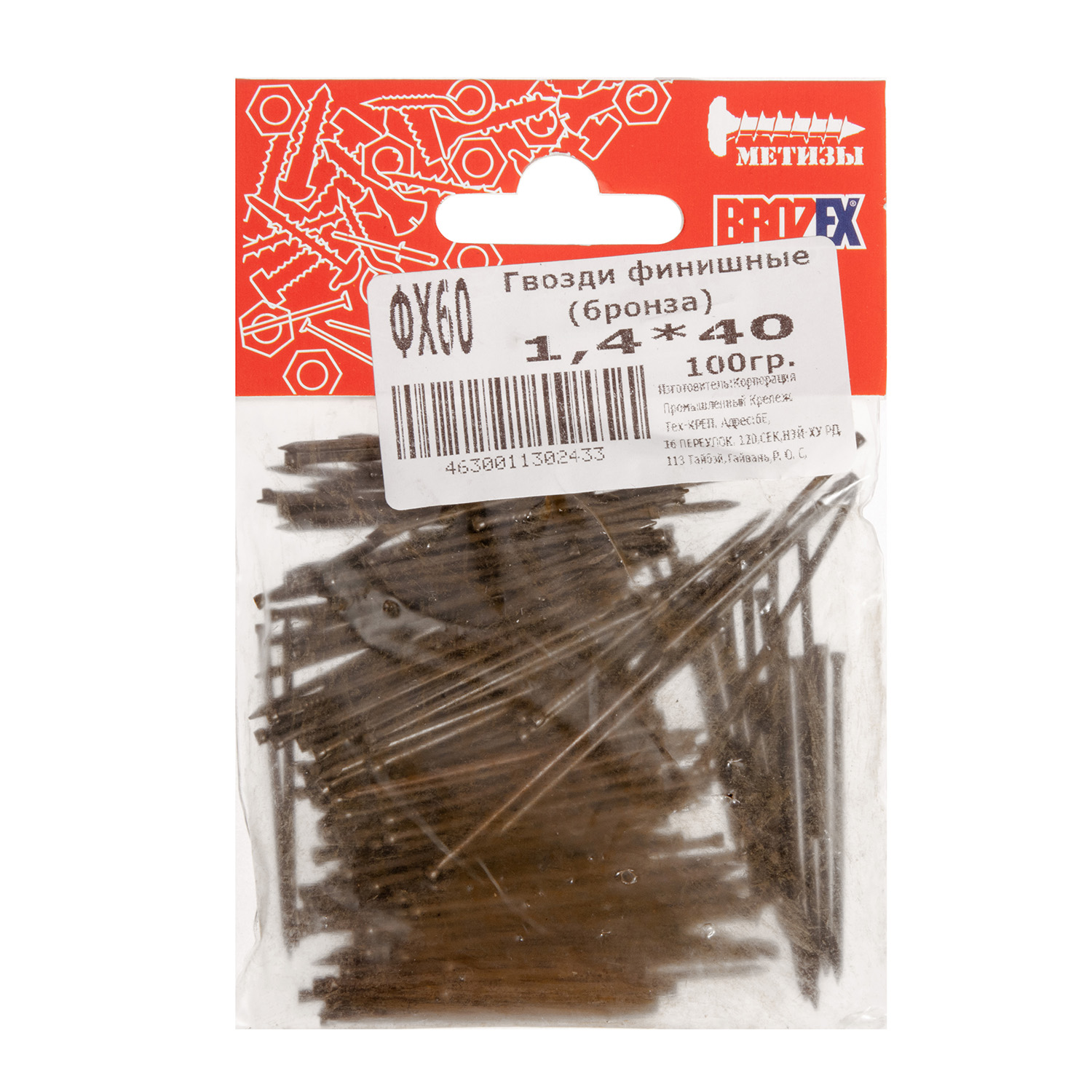 Гвозди финишные 1.4х40 мм BROZEX, 0.1 кг, бронза