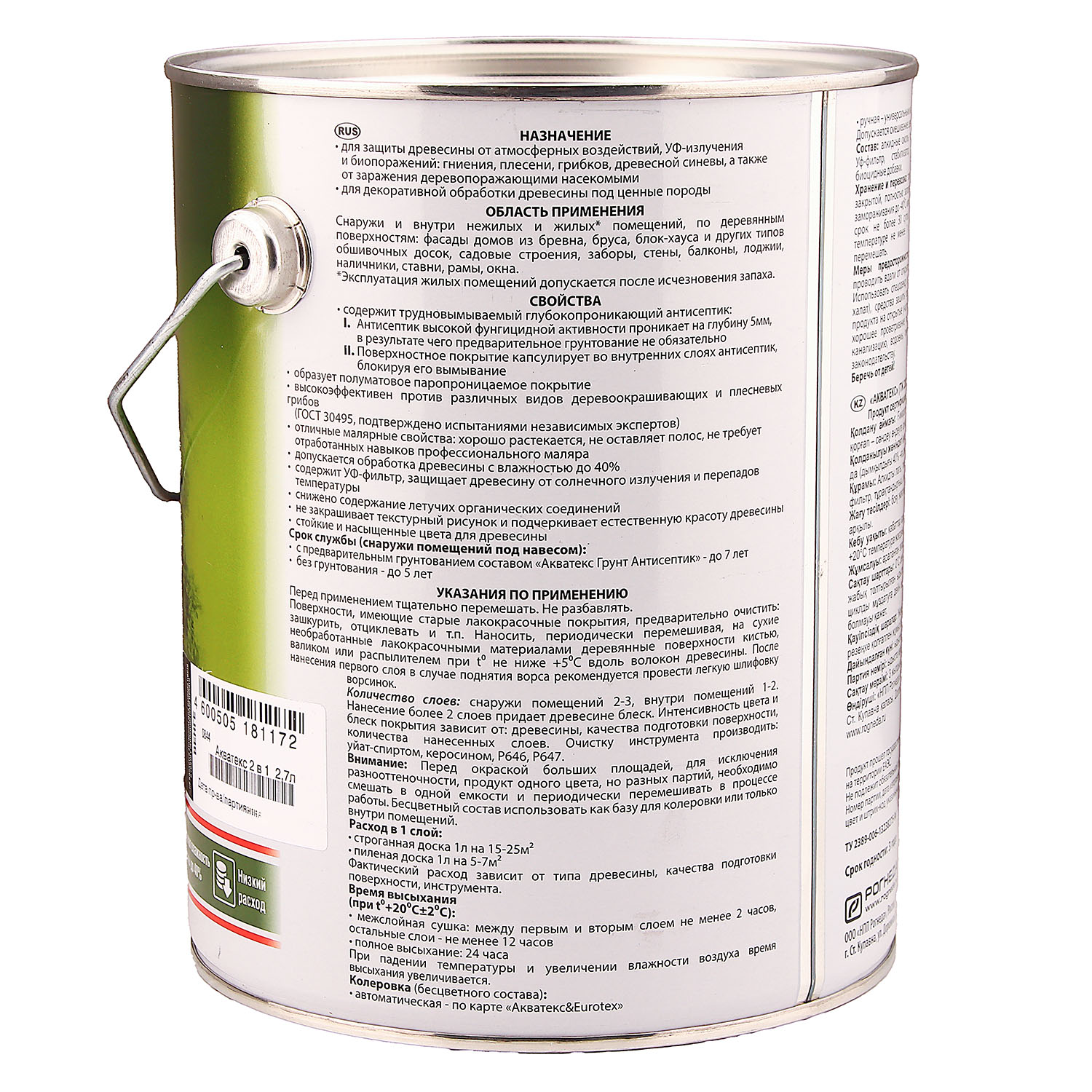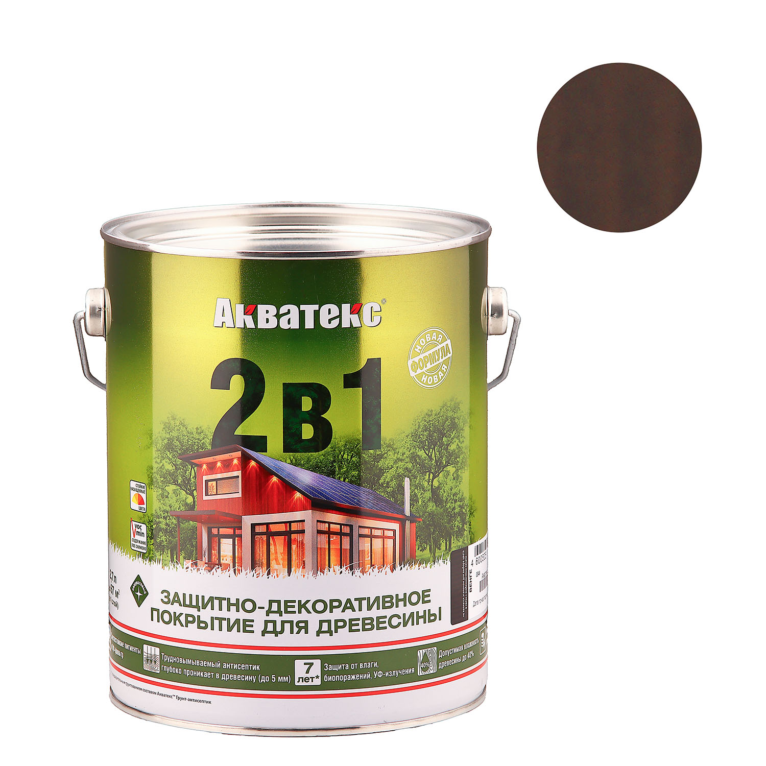 штАлкидное покрытие для дерева Акватекс 2 в 1 венге 2.7 л защищает поверхности от атмосферных воздействий, УФ-излучения, насекомых, гниения, деревоокрашивающих и плесневых грибов. Образует покрытие, имитирующее текстуру ценных пород дерева.