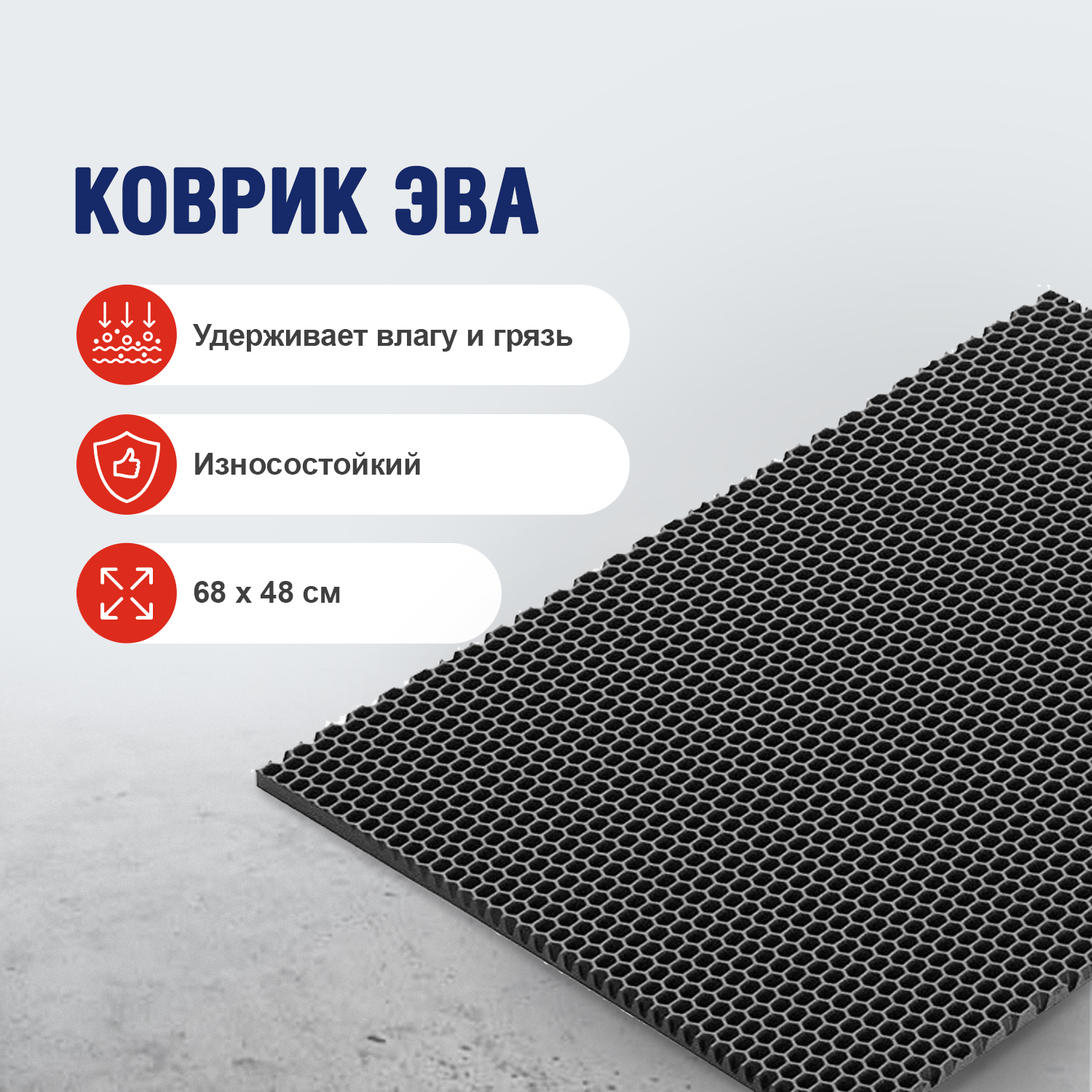 Коврик грязезащитный ЭВА Homester, 68х48 см, ромбы, черный