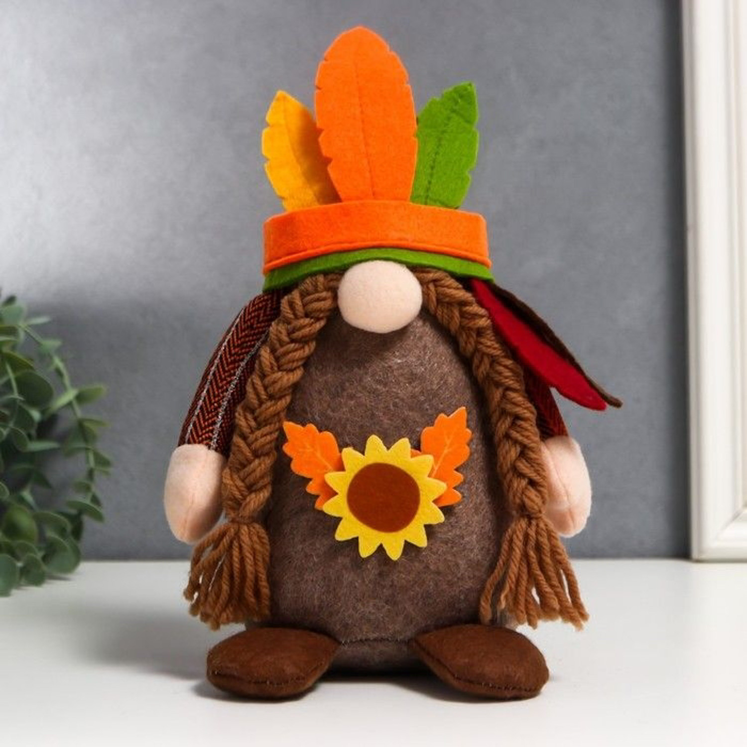 Кукла интерьерная "Бабусечка в индейском головном уборе" 25х7х9 см 7509633