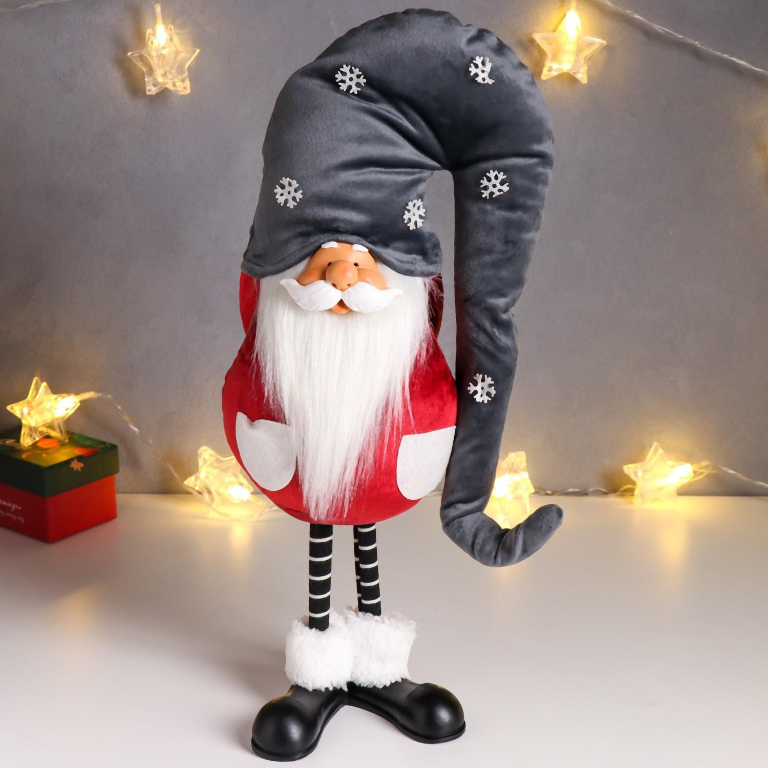 Кукла интерьерная "Дед Мороз в бордовом кафтане, в сером колпаке со снежинками" 42х13х18 см 626