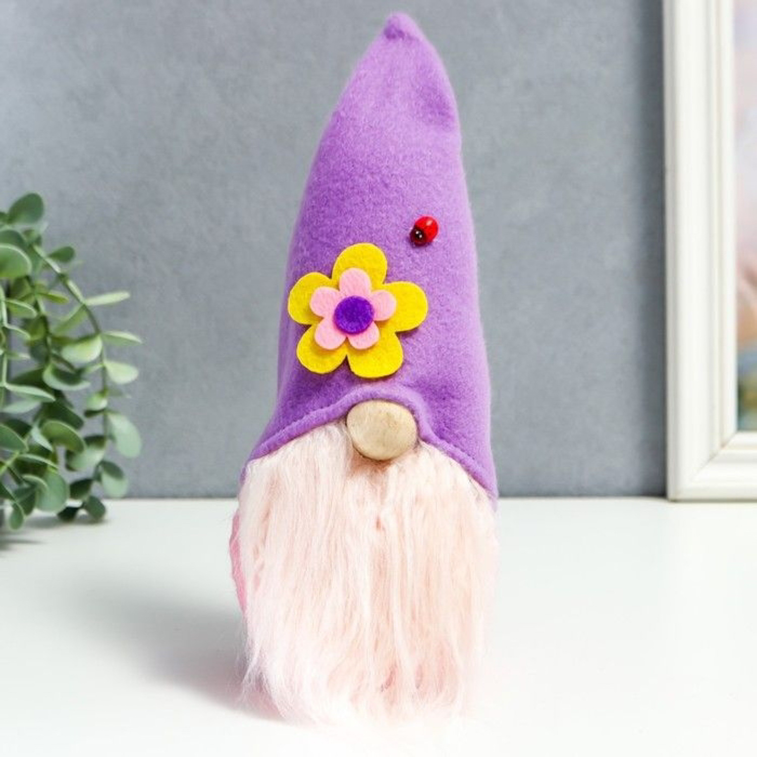 Кукла интерьерная "Гном в колпаке с цветком и божьей коровкой" 25х8х6 см 7510609