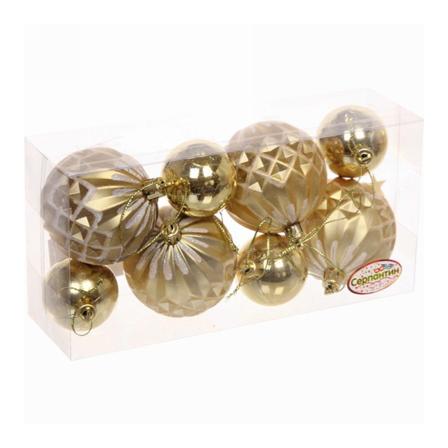 Новогодние шары 6/4 см (набор 8 шт) "Яркий восторг", Золото