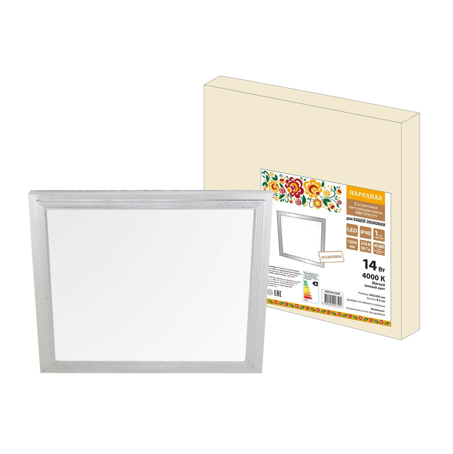 яяяПанель светодиод. СВО 295х295 Народная 14Вт 4000К (БЕЗ ДРАЙВЕРА) TDM SQ0329-0209 *1/6