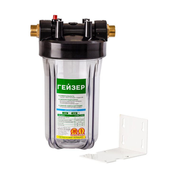 Магистральный фильтр Корпус Гейзер 10BB прозрачный (латунные ниппели 1") (Стандарт)