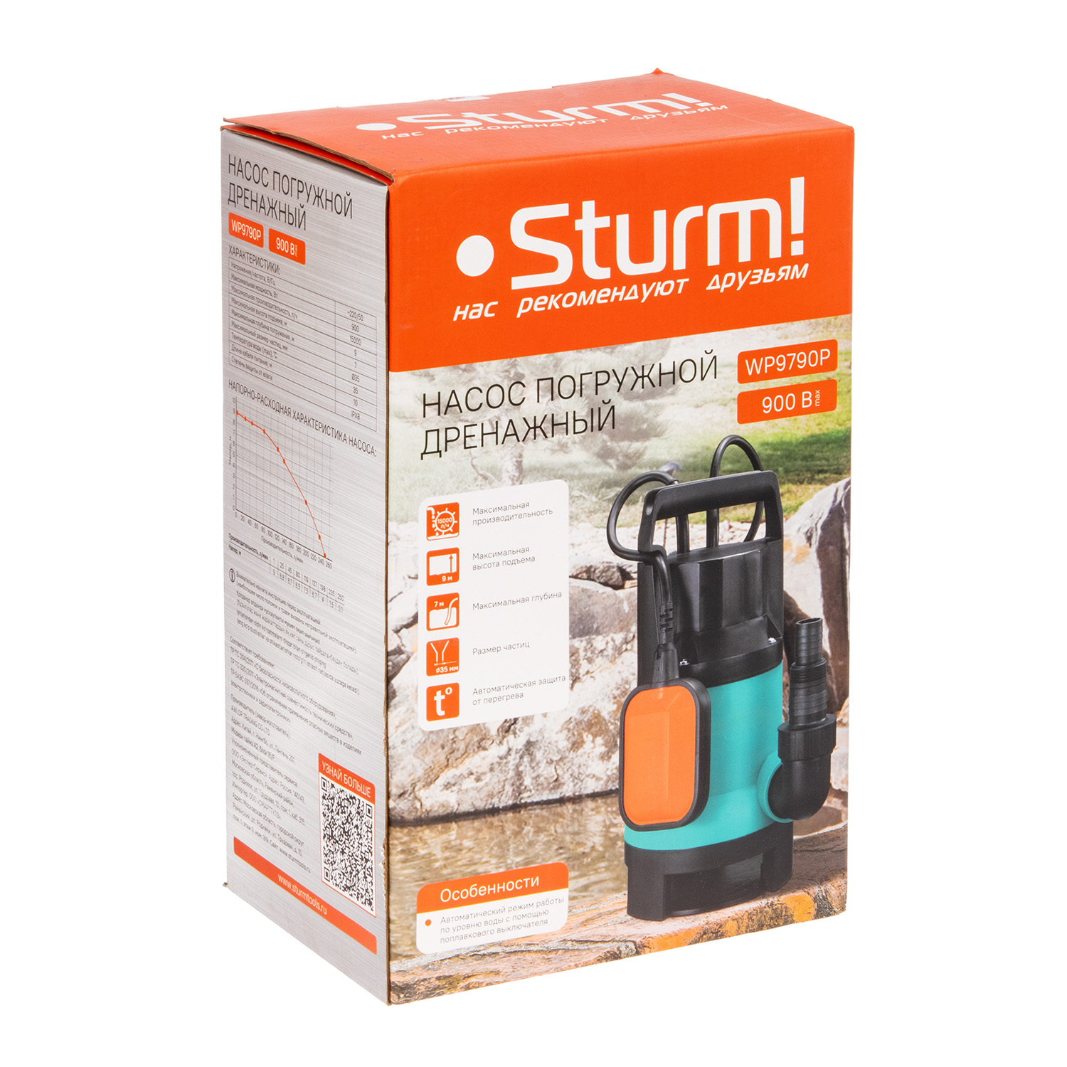 Насос погружной дренажный д/грязной воды 900Вт 15000л/час шнур 10 м STURM WP9790P * 1/4