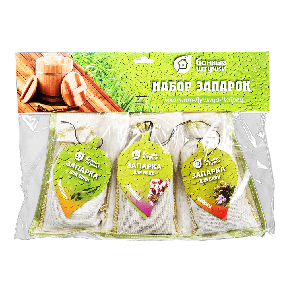Набор запарок д/бани в сумочке 3шт. (мята, эвкалипт, можжев.)  "Банные штучки" *1(для розницы)