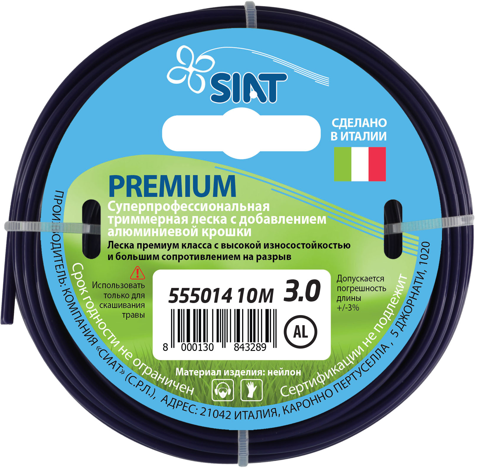 Леска 3,0мм круг с алюминиевой крошкой 10м черный арт.555014 PREMIUM SIAT *1/160