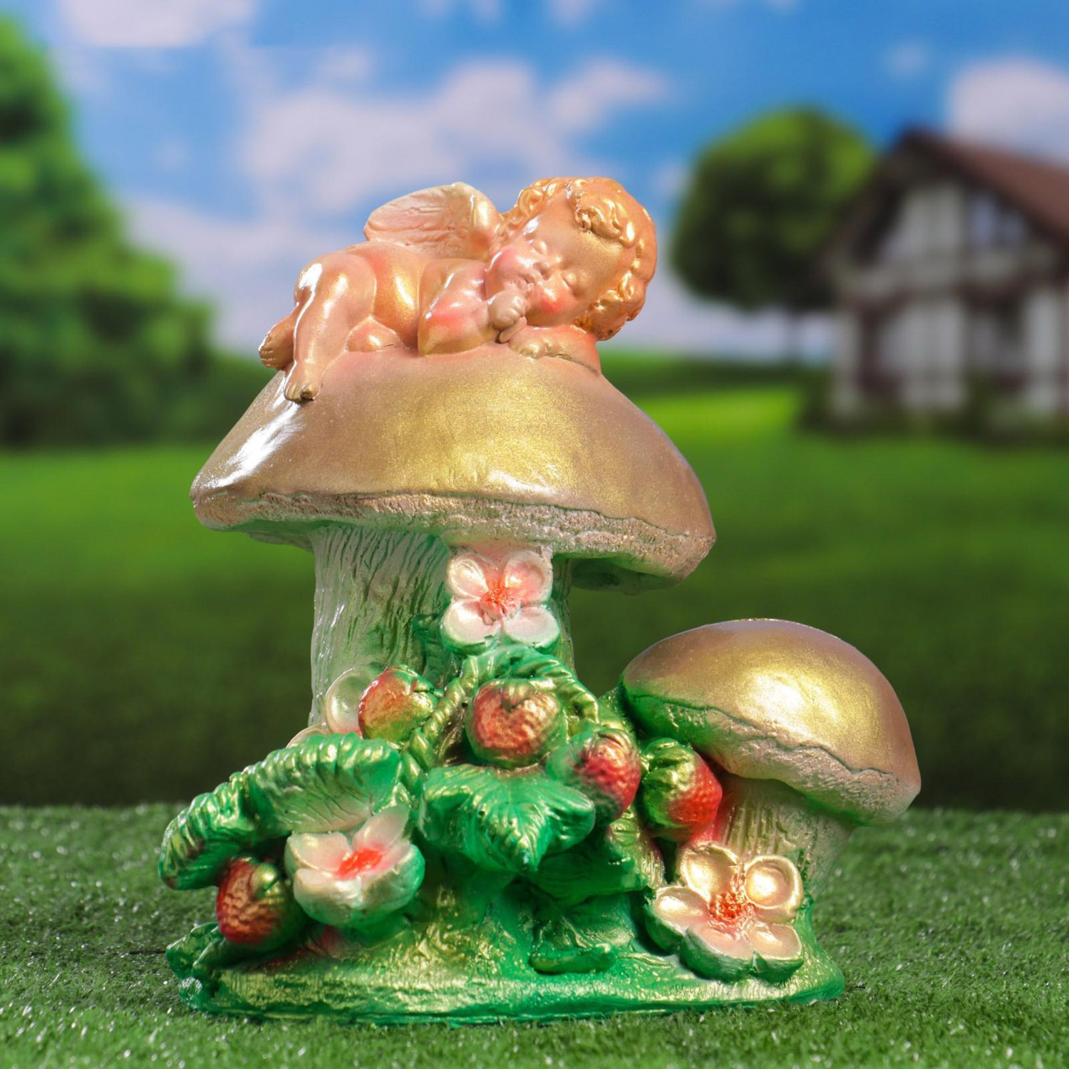 Садовая фигура "Ангелочек на грибе" 17х20х24 790043