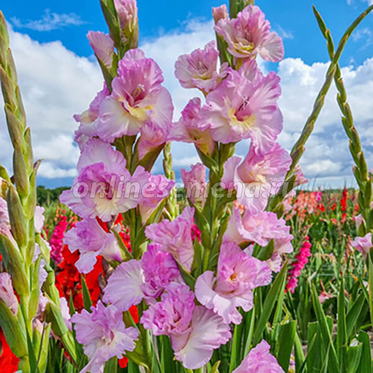 Гладиолус – клубнелуковичное растение высотой 50-150 см с вертикальным стеблем и линейными или мечевидными листьями. Цветки воронковидные, собраны в колосовидное соцветие до 80 см длиной, самых разнообразных окрасок, могут быть простыми или гофрированными.