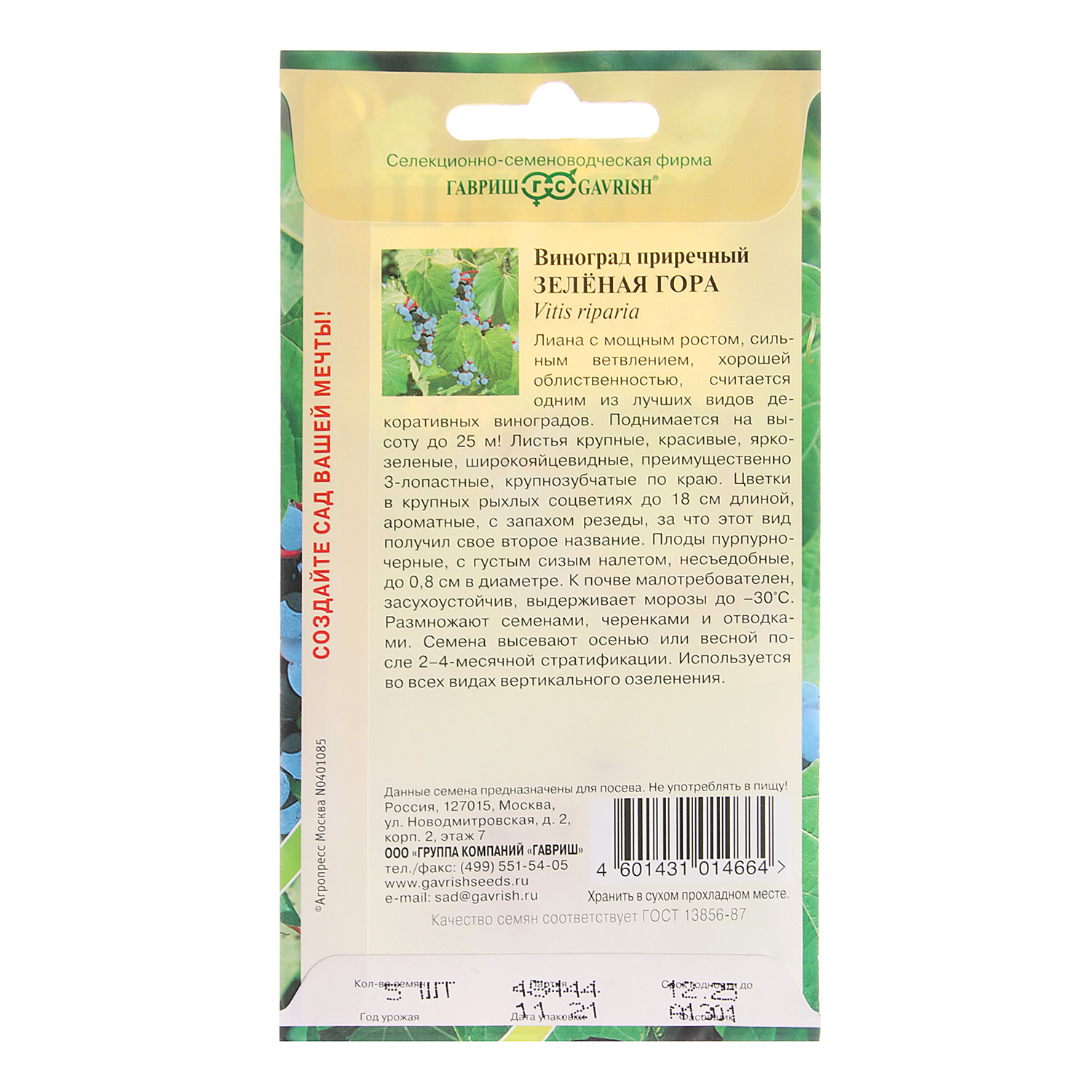 Виноград приречный Зеленая гора 5шт Гавриш *10
