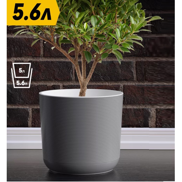 Кашпо пластм. "Лион" 5,6л d верха 210мм h195мм со вставкой Серый муссон ЛИ21-70 *1/4