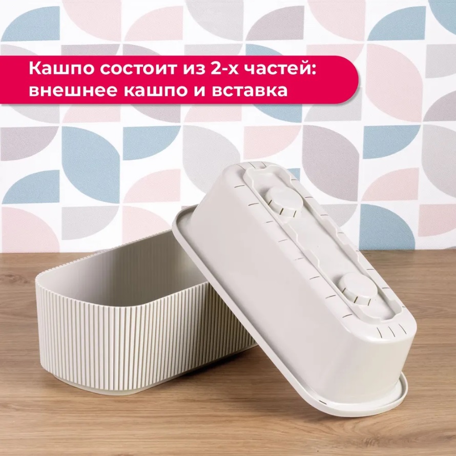Кашпо пластм. "Стрип" 1,7л 290х130мм h92мм со вставкой Кремовый М3251 ("М-Пластика") *1/9