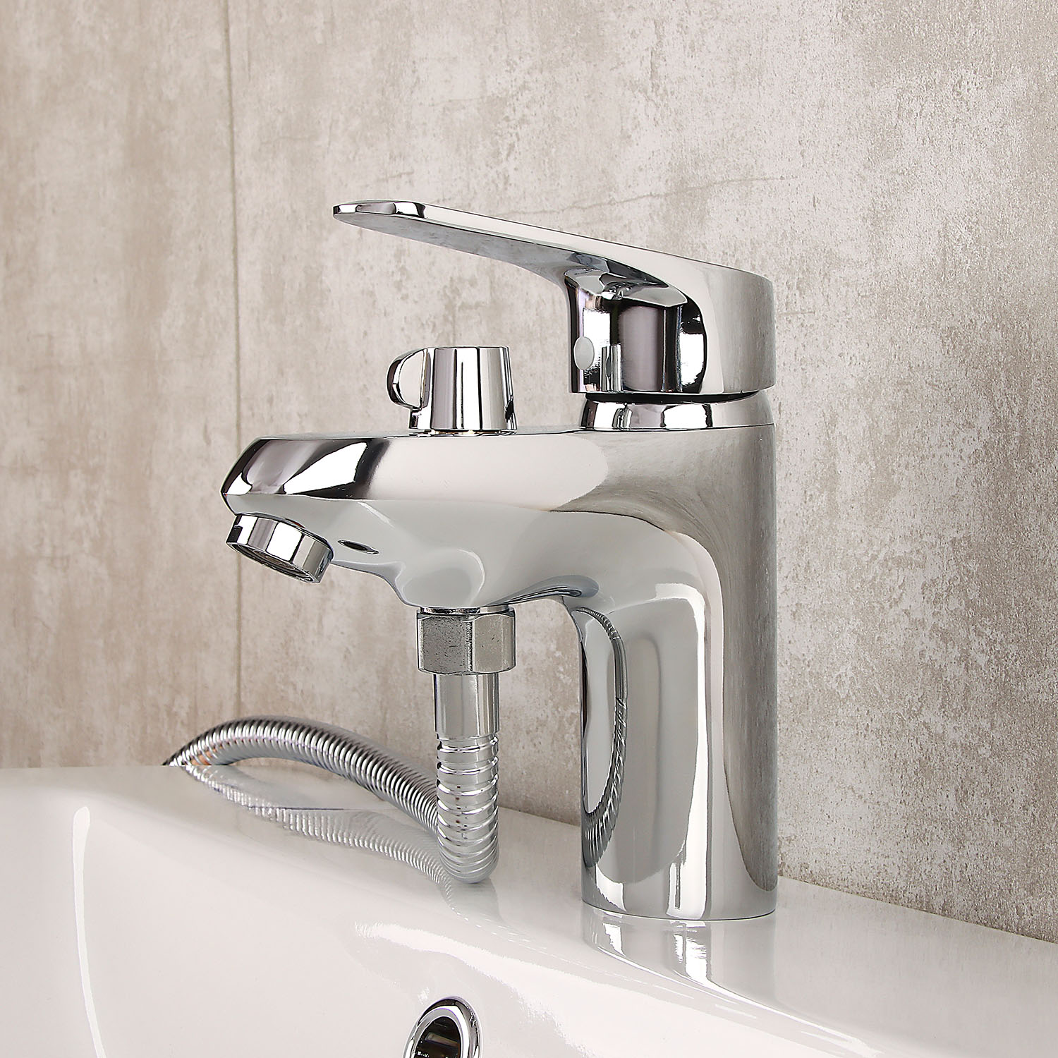 Смеситель для ванны Potato P1409, с комплектом, короткий излив, однорычажный