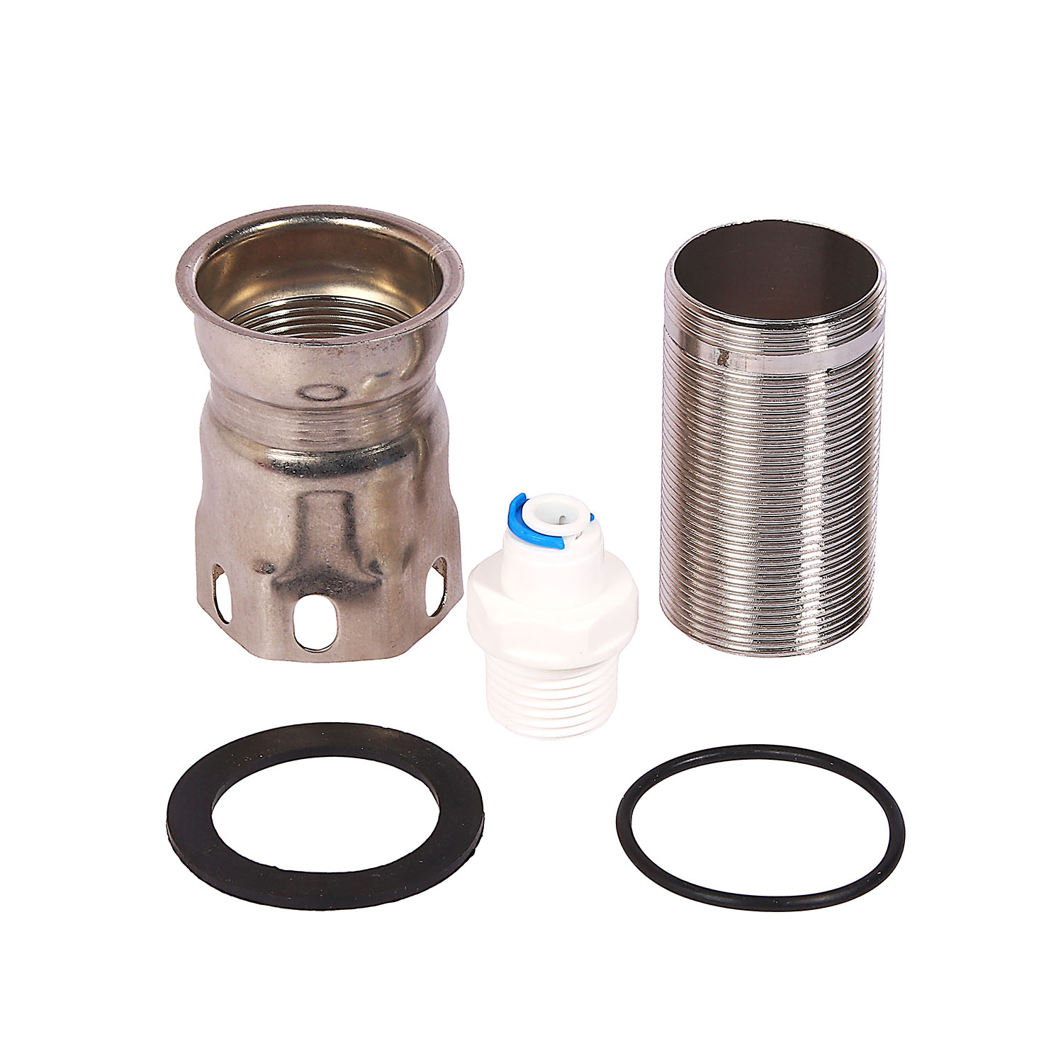 Смеситель, крепежная гайка, подводка 50 см - 2 шт., подводка 35 см, переходник на фильтр, паспорт