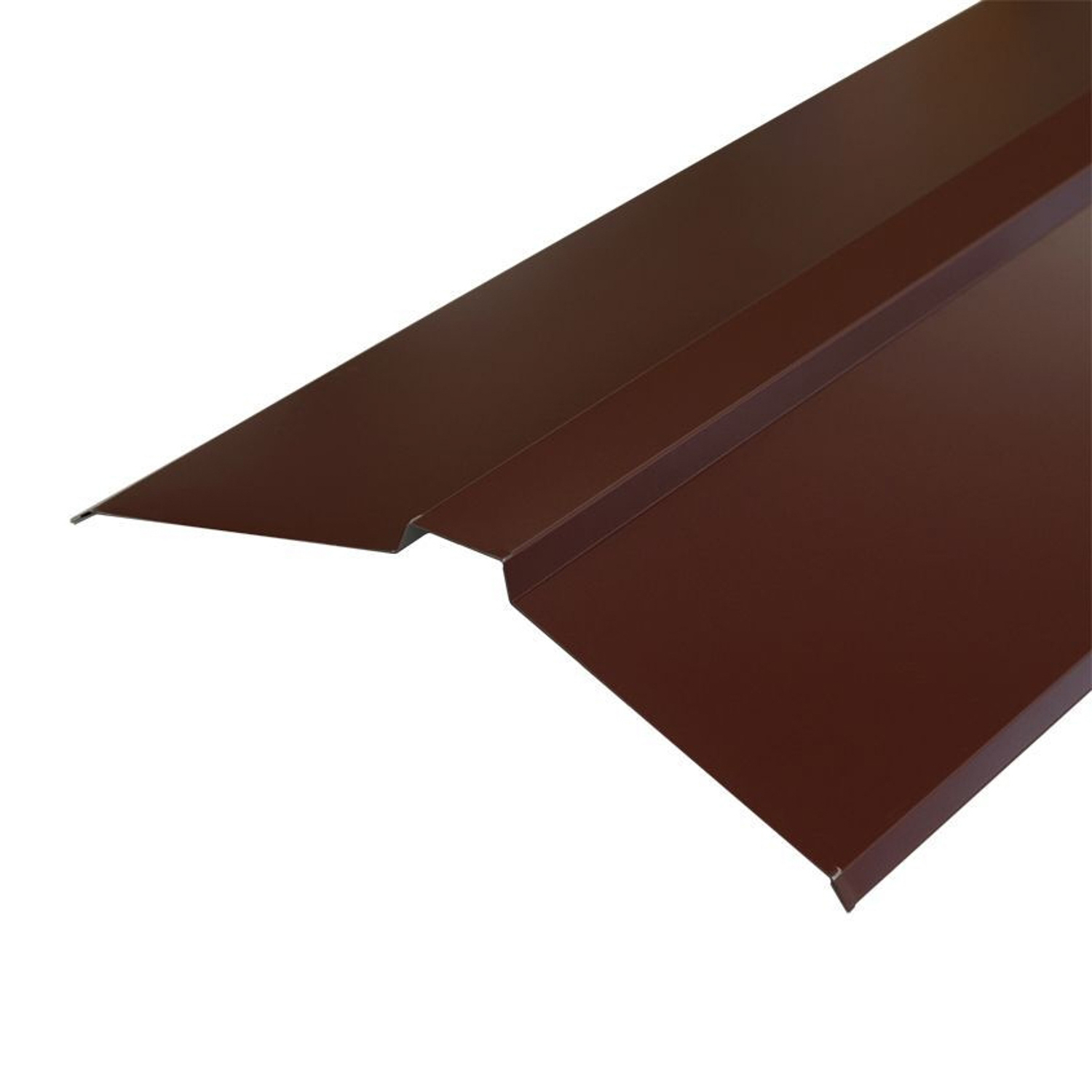 Конек устанавливается после монтажа кровельного покрытия при соединении скатов. Под конек желательно укладывать уплотнитель, который защищает подкровельное пространство от снега и мусора. Доборный элемент производится в защитной пленке, которую перед монтажом необходимо удалить. Хранение изделия на открытом солнце затруднит отделение пленки от металла.