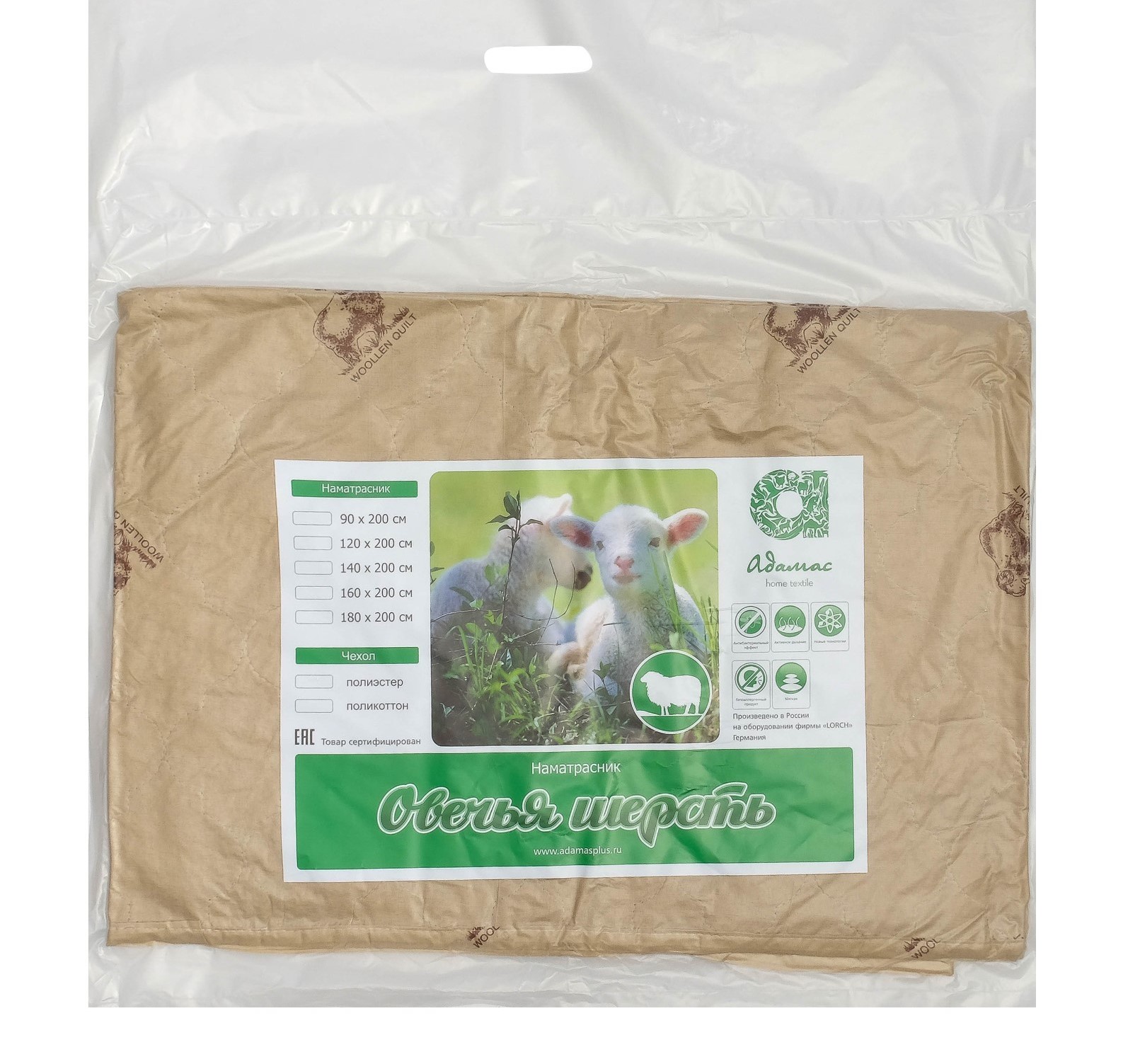 Наматрасник на резинке 140*200см овечья шерсть/полиэстер Адамас *1
