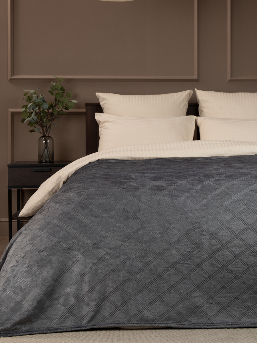 Плед 200*220см фланель Клетка темно-серый TF FNE DKGY2 041/2022 NC Absolute *1