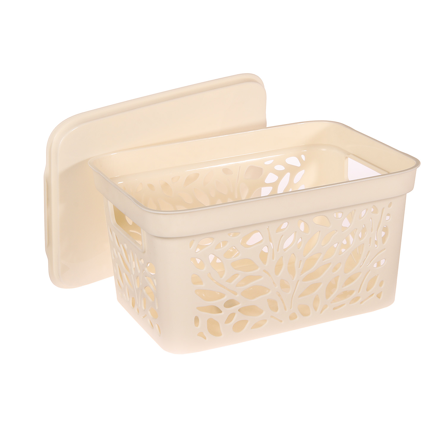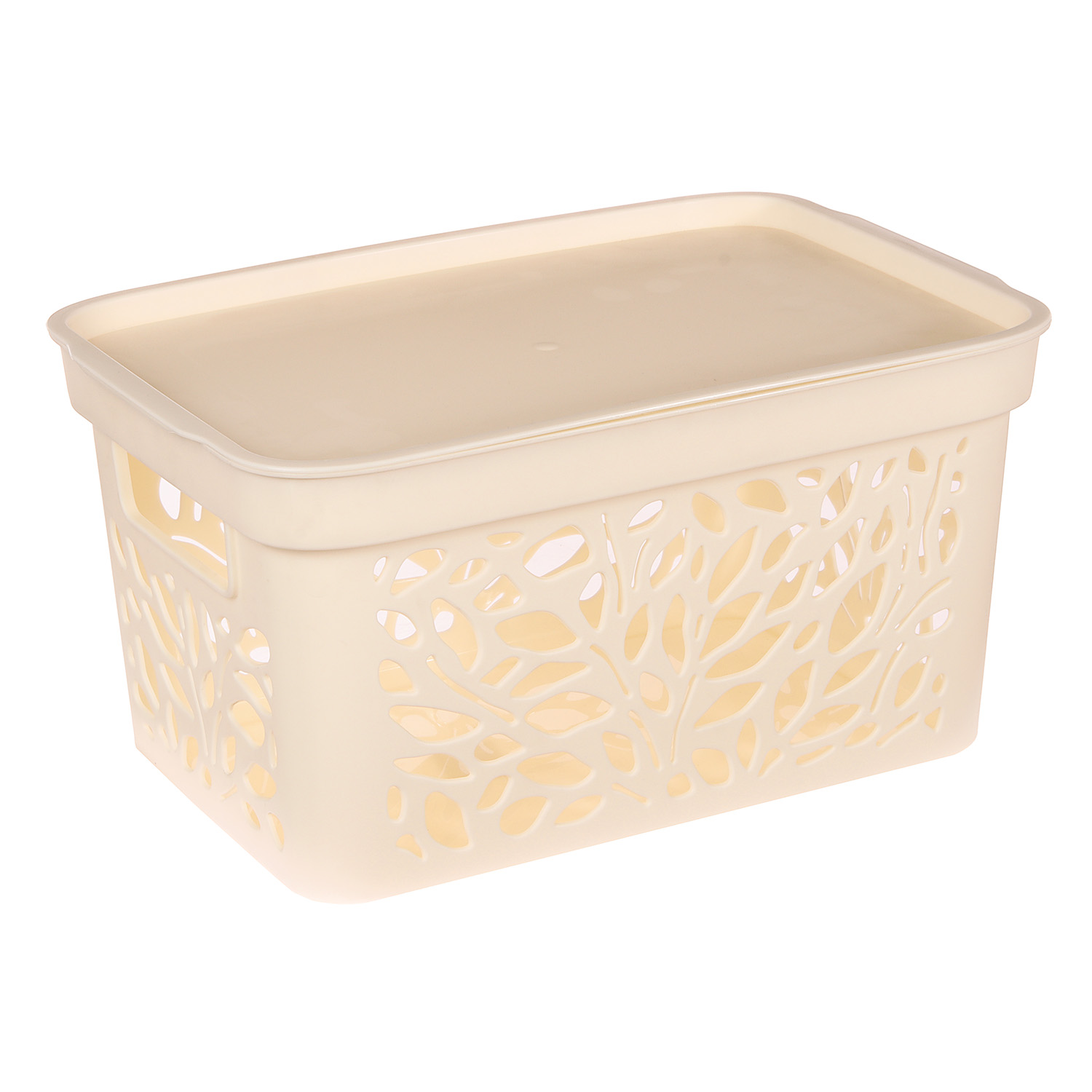 Корзина для хранения пластм. "Leaves" 333х225х174мм с Крышкой 10л Молочный 837("Полимербыт") *1/12