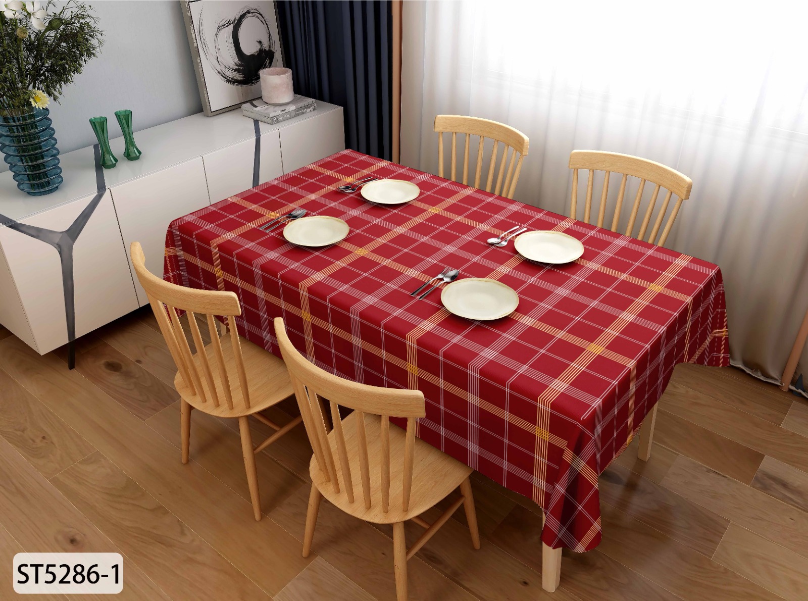 Клеёнка на тканевой основе "Print" "Шотландка" красн. шир.1,37м GW-21650 "Great Way" *20