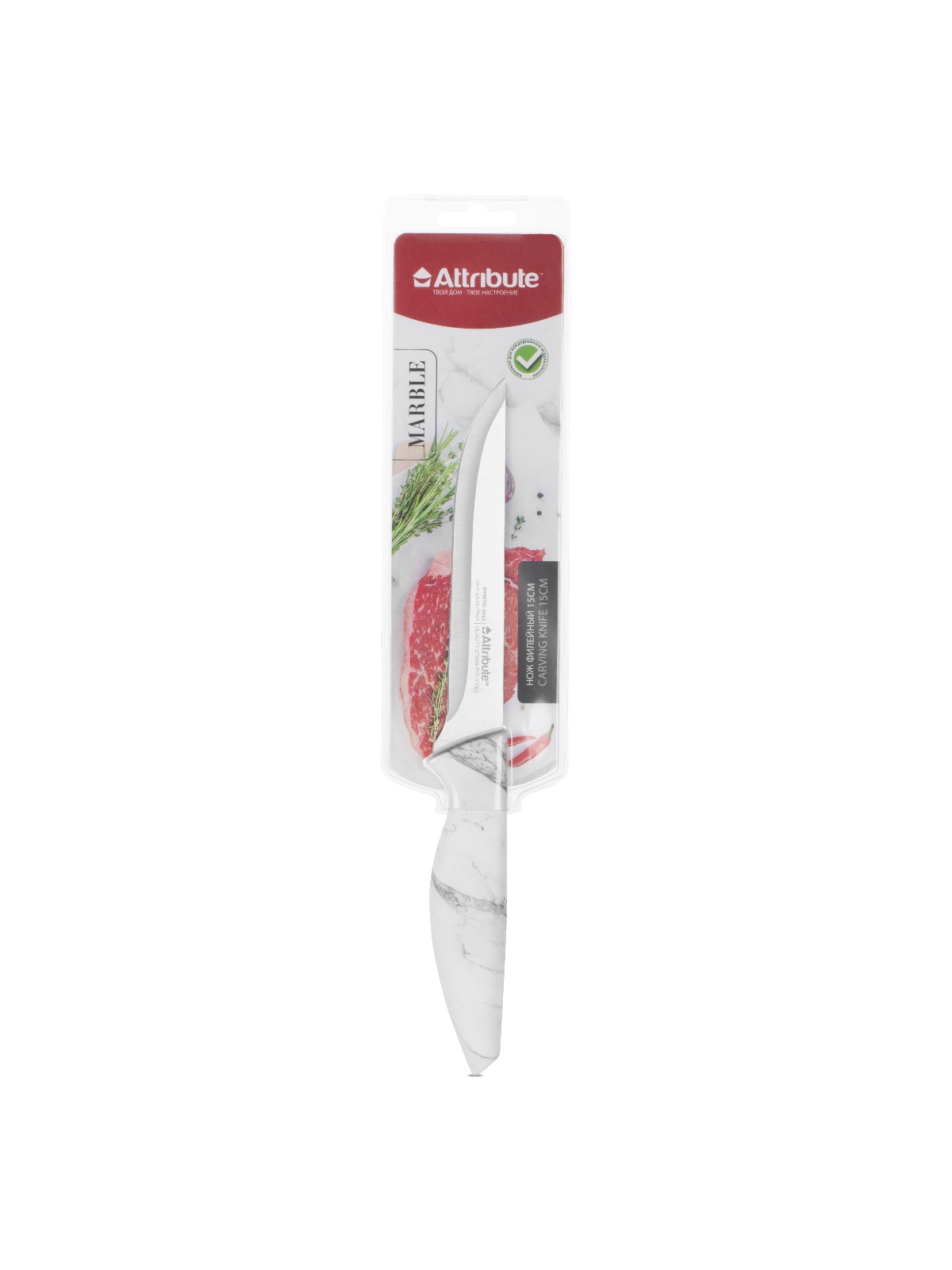 Нож кухонный ATTRIBUTE  пл.р. Marble филейный дл.лезв.15см AKM236 блистер *1/6/36