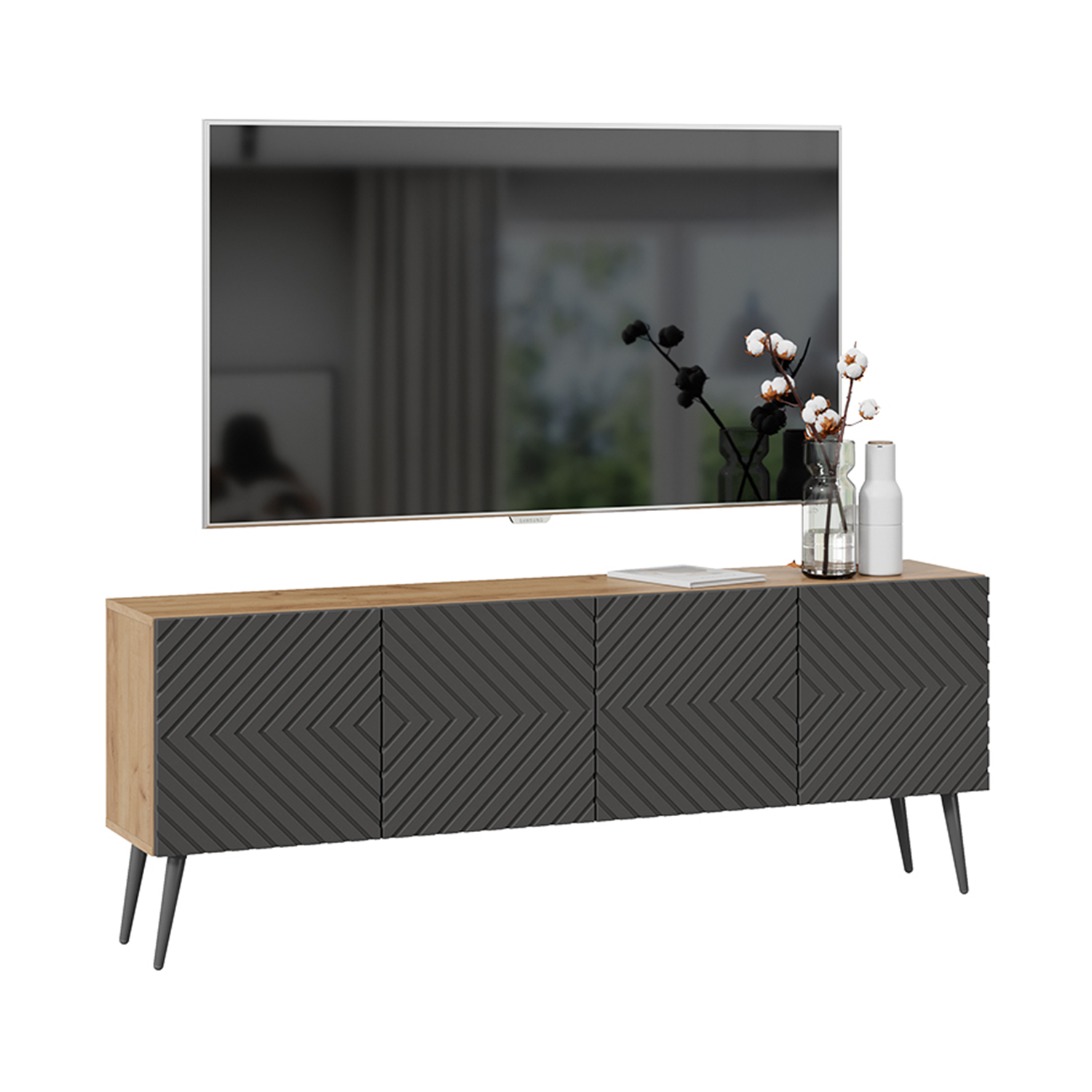 Тумба под ТВ 1602*308*400 Тип1 Дуб крафт золотой/Холст вулкан Танго ТриЯ*1