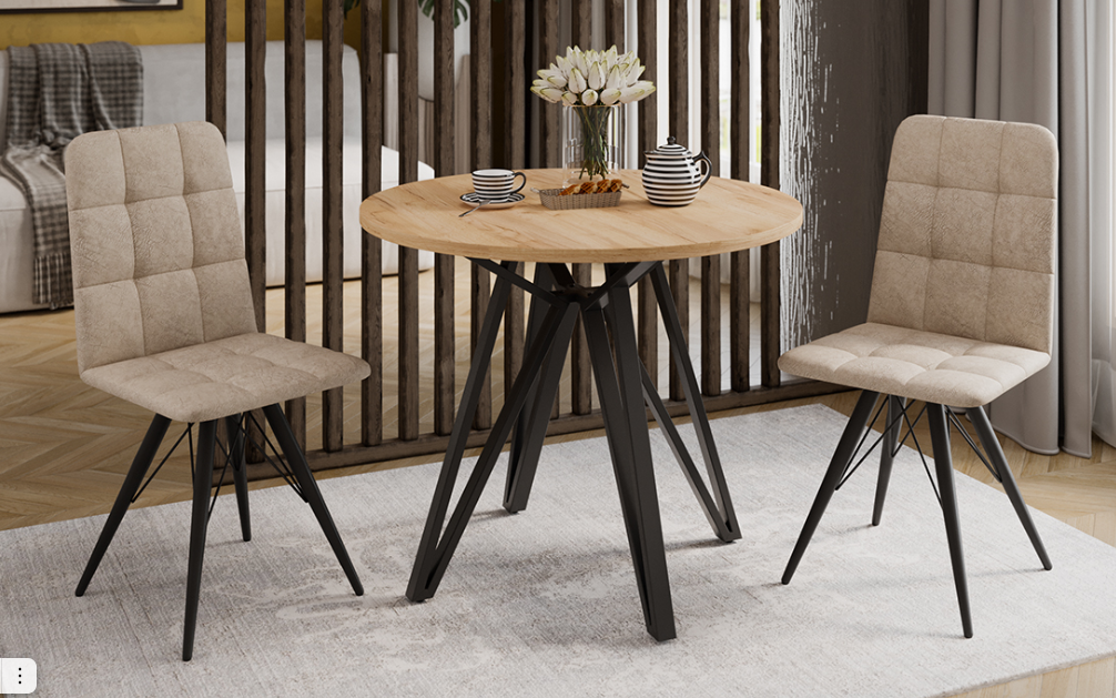 яяяСтол обеденный круглый нераздв.Ройс Тип 2 d900мм h750мм ДУБ КРАФТ золотой+опора черный муар*1