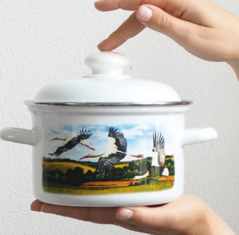 яяяНабор кастрюль эмалированных: 2,0л+3,0л+4,5л рис. "Аисты" С-007АП2/4 "Лысьвенские ЭМАЛИ" *1