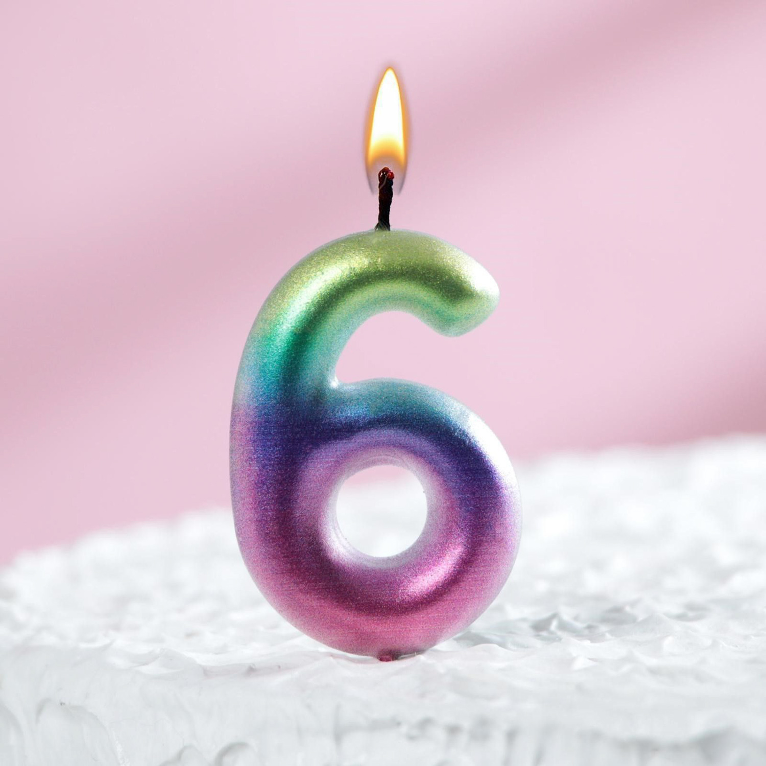 Свеча в торт "Акварель", цифра 6, 6 см 120318