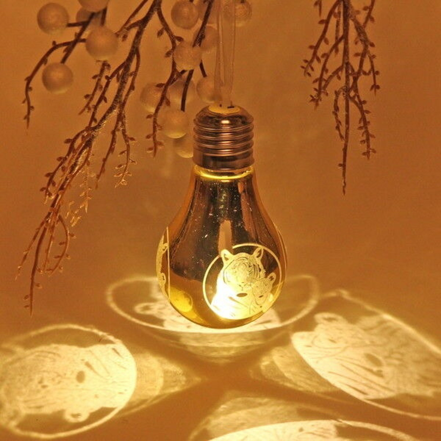 Подвеска ЛАМПА с подсветкой 6*9 см "Величественный тигр", Золото (подсветка Теплый белый)
