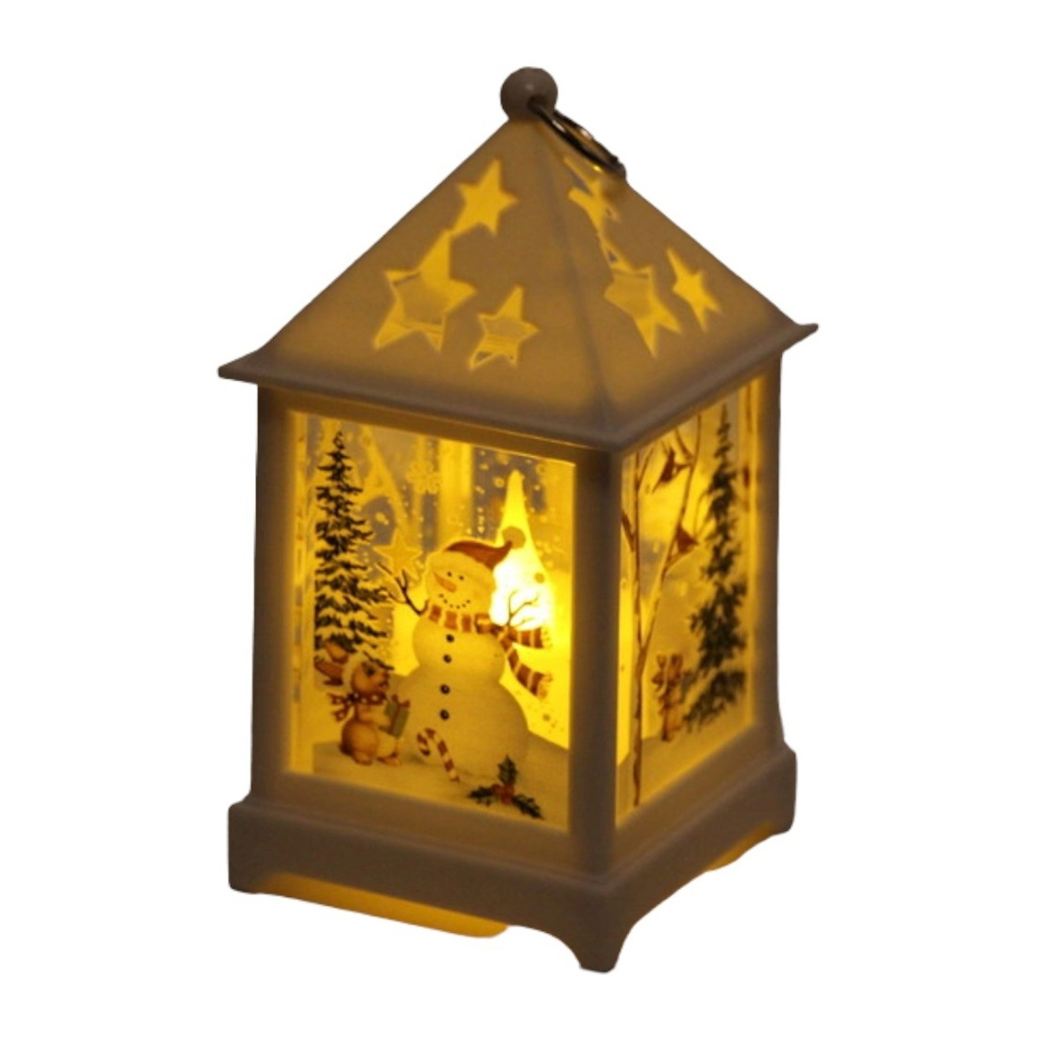 Сувенир с подсветкой "Звездный домик со снеговичком" 12,5*6,5 см, Белый