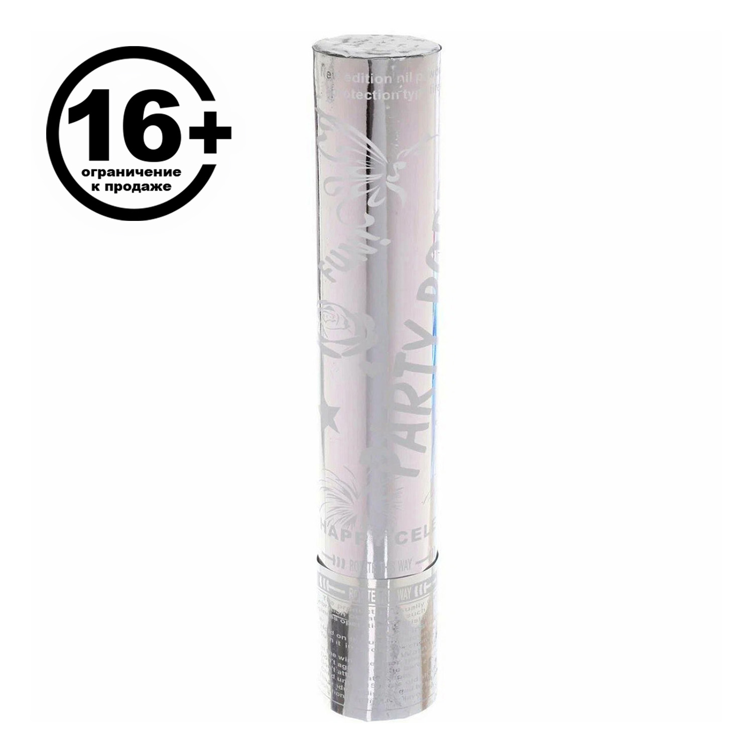 Пневмохлопушка 30 см "Голограмма" конфетти (серебро)