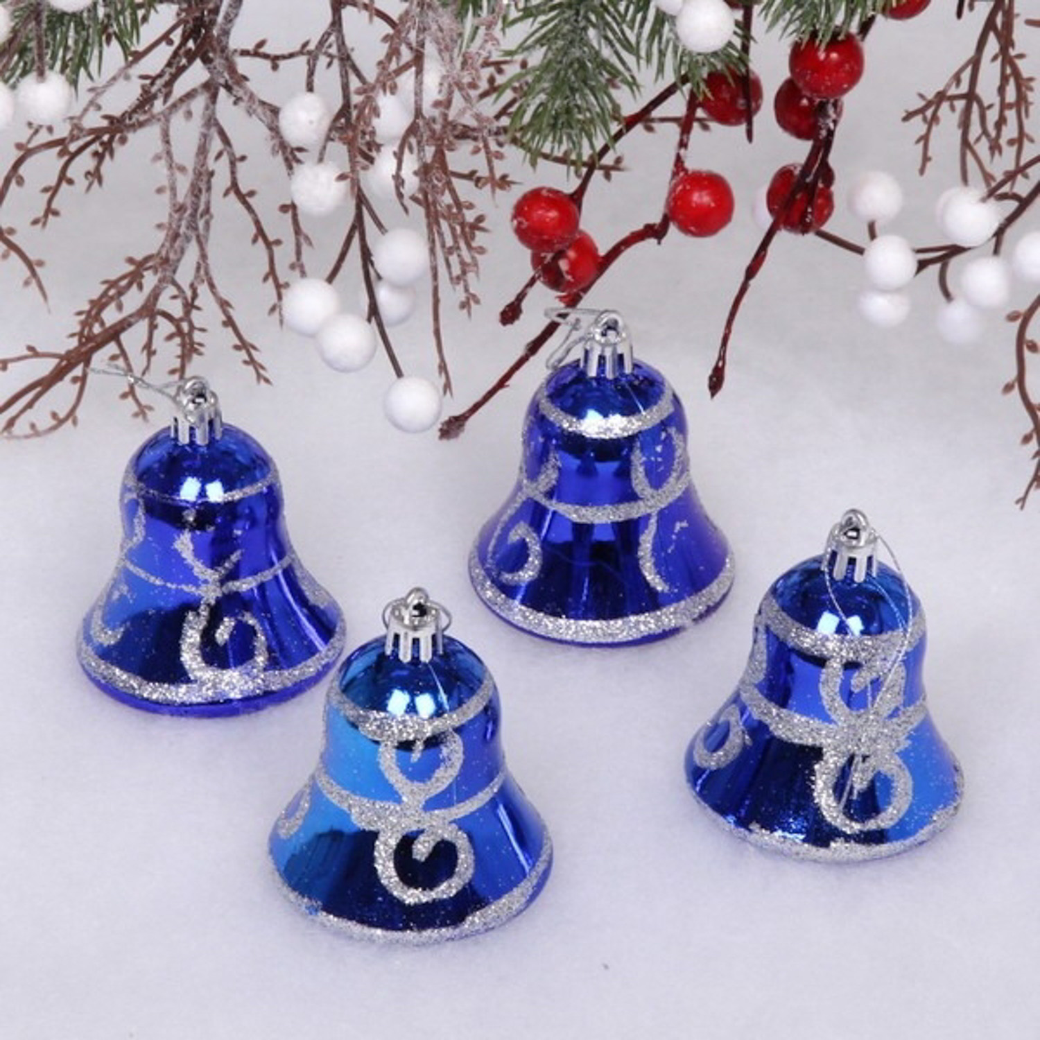 яяяЁлочные игрушки "Колокольчик вензель" 5,5 см (набор 4 шт), синий