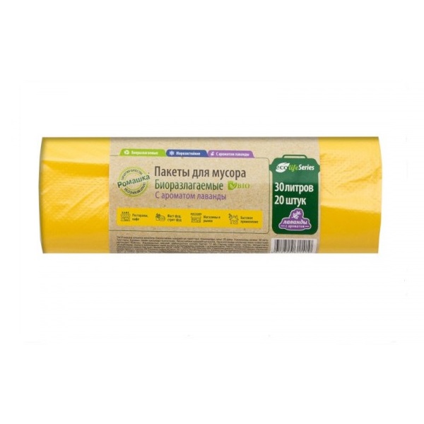 Мешки для мусора 30л*20шт толщ.6мкм Биоразлагаемые Желтый ПНД арт.ЭЛБ302045Ж "Ромашка" *45
