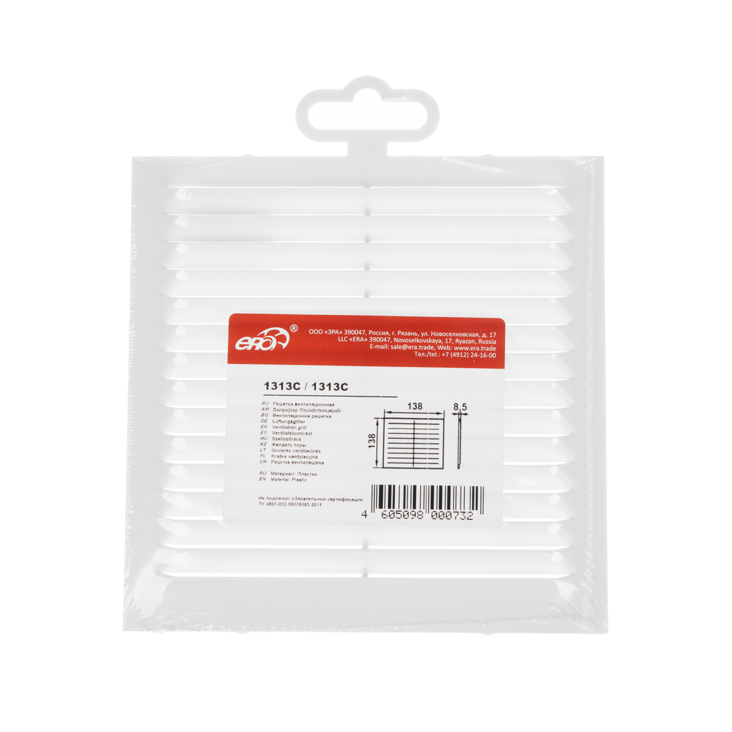 Решетка вентиляционная138х138мм 1313С Эковент (с сеткой) *1/100