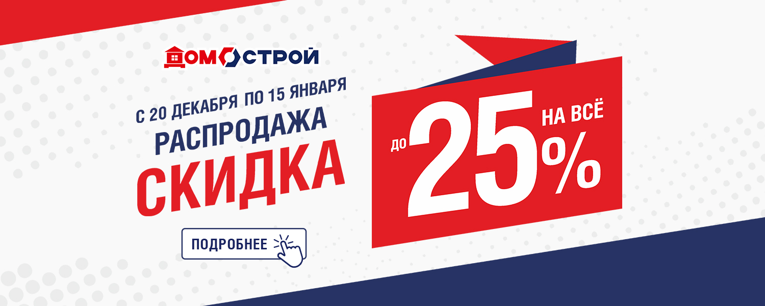 Распродажа в ДомоСтрой на ул. Зимняя, д. 9/5! Скидка до -25% на товары с белыми ценниками. Если у вас запланирован ремонт, строительство или обустройство дома - не упустите возможность купить все необходимое со скидкой!