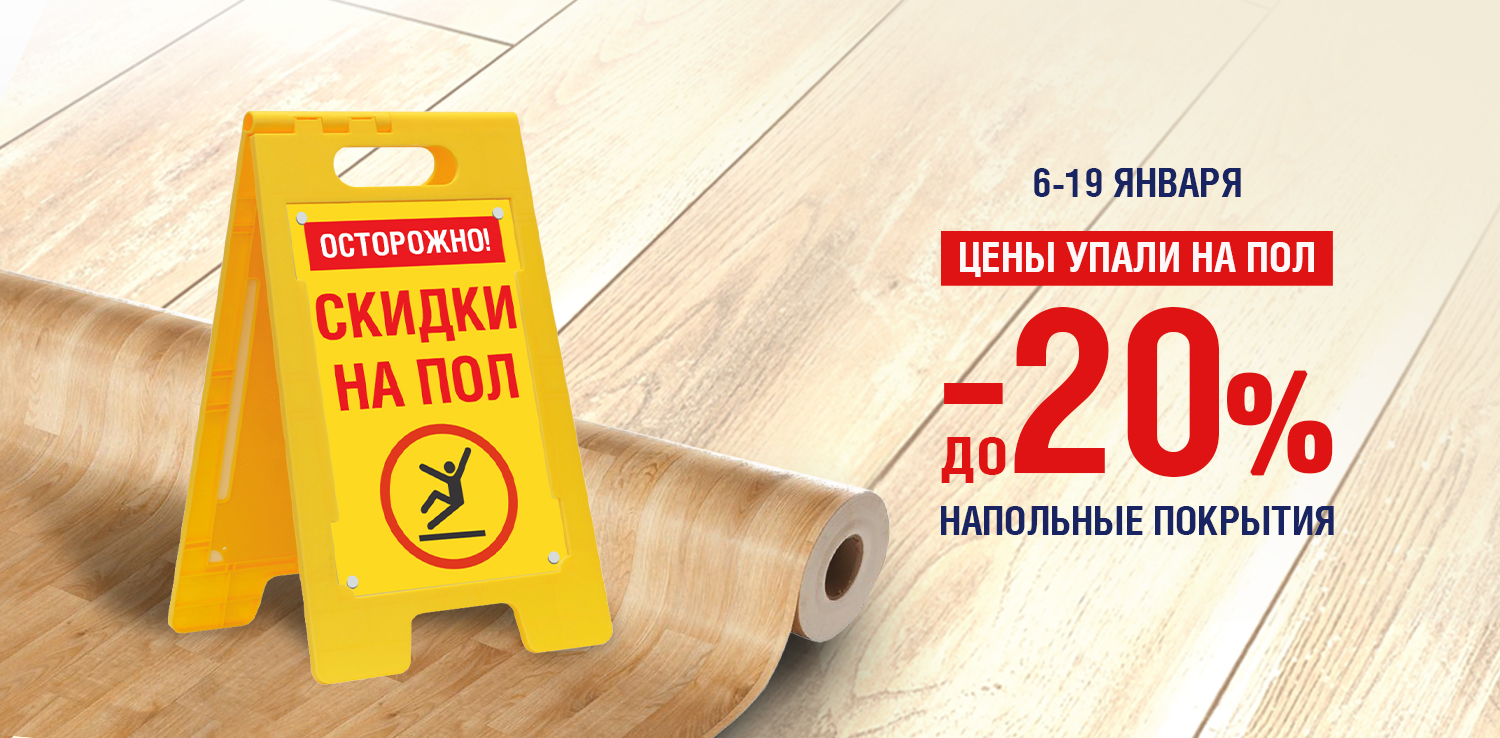 Распродажа напольных покрытий в сети ДомоСтрой! С 6 по 19 января — скидки до 20% на напольные покрытия. Это отличная возможность начать год с обновления интерьера по привлекательным ценам!